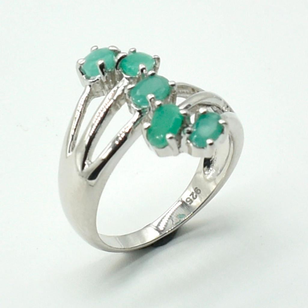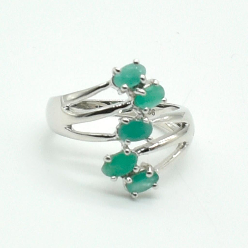 Silver Emerald (2.25ct) Rhodium Plated Ring (~weight 3.95g)