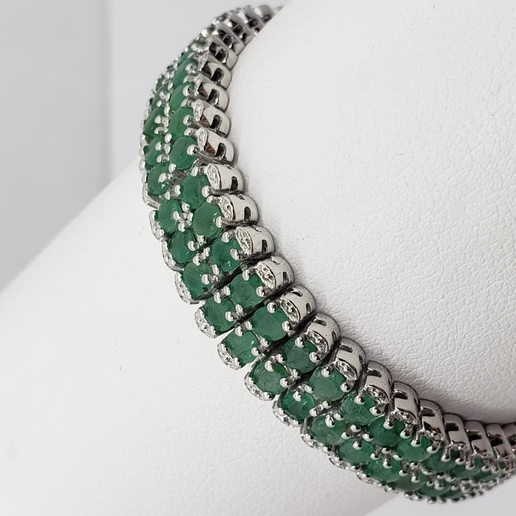 Silver Emerald(7.4ct) 7.5 Inch Bracelet (~weight 22.6g), Insurance Value $1937 (Estimated Selling Price from $210 to $420)