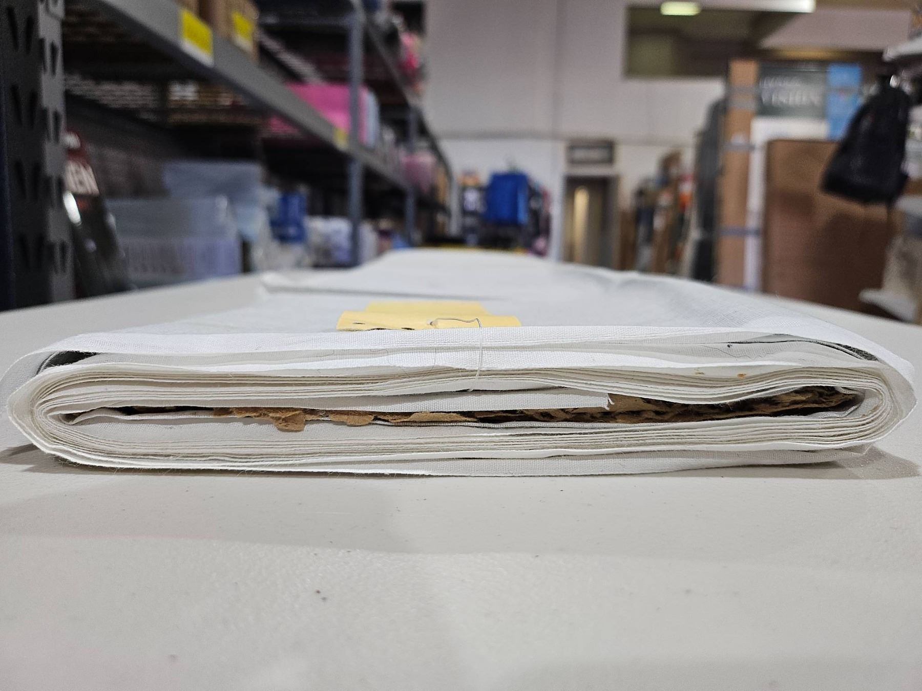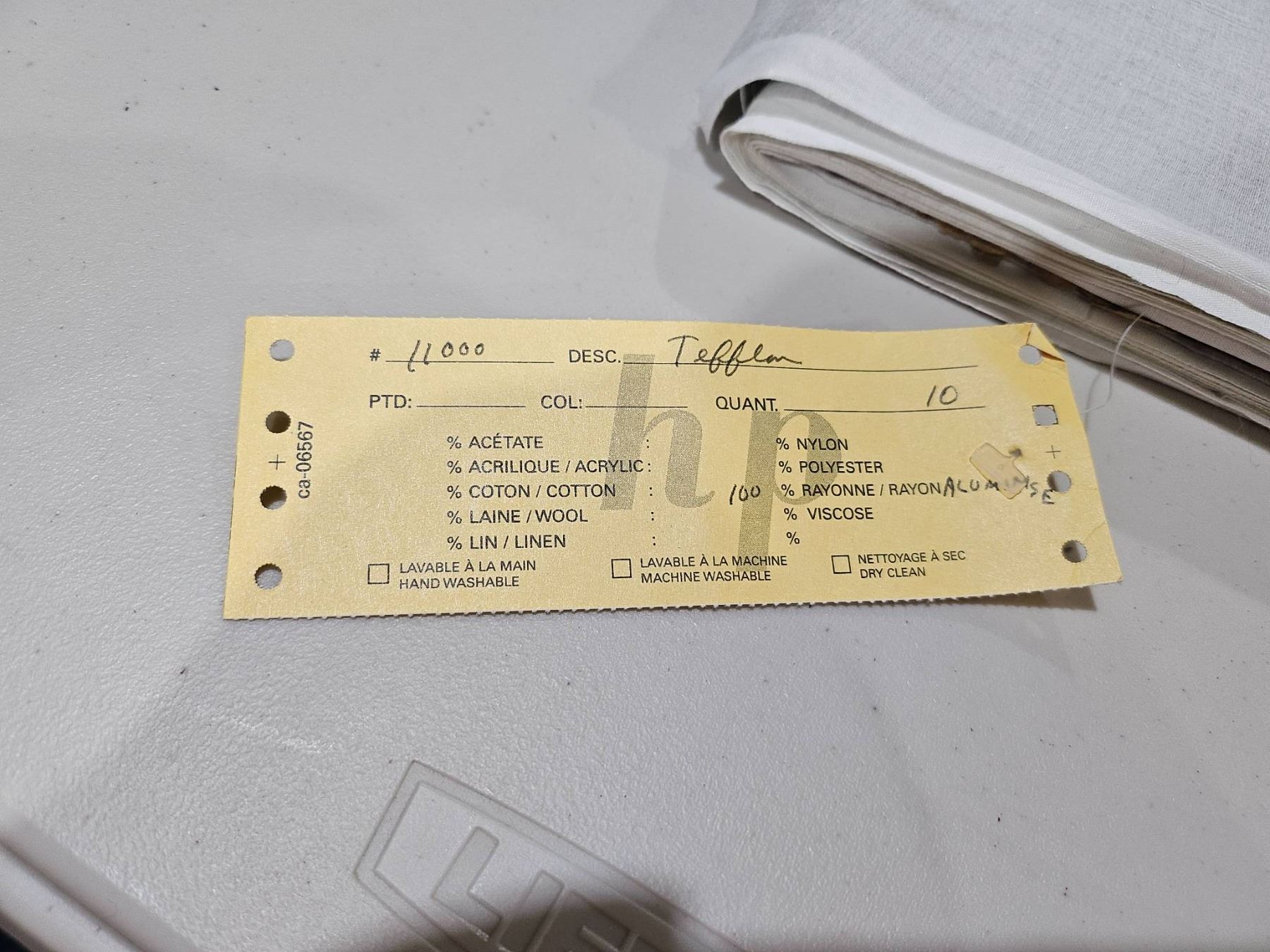 Silver Fabric Material Roll With Partial Label Description