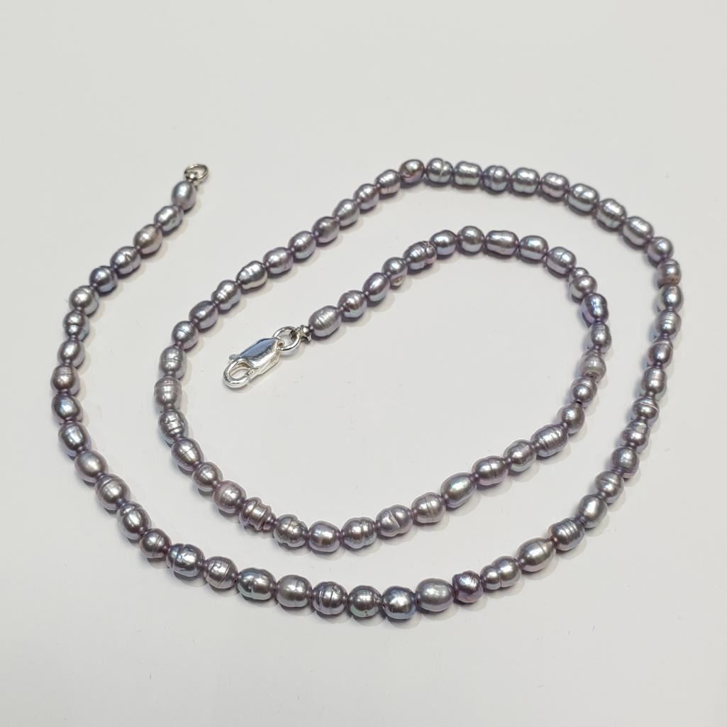 Silver Fresh Water Pearl Necklace (~length 16 inches), Suggested Retail Value $300