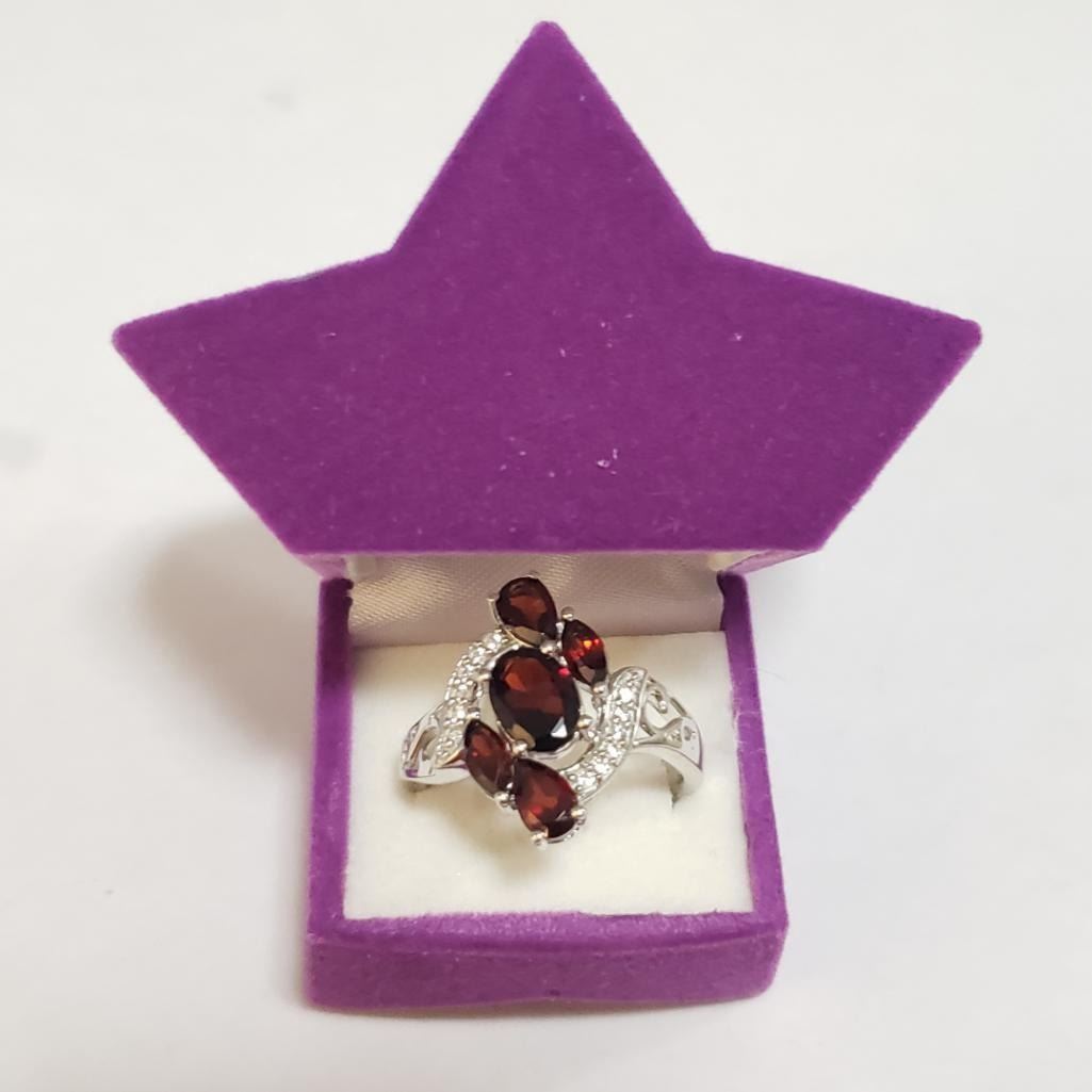 Silver Garnet(2.3ct) Cubic Zirconia Ring (~Size 9)(Ring is resizable for $40) (~length 0inches) (~weight 4.08g), Suggested Retail Value $240 (Estimated Selling Price from $36 to $72)
