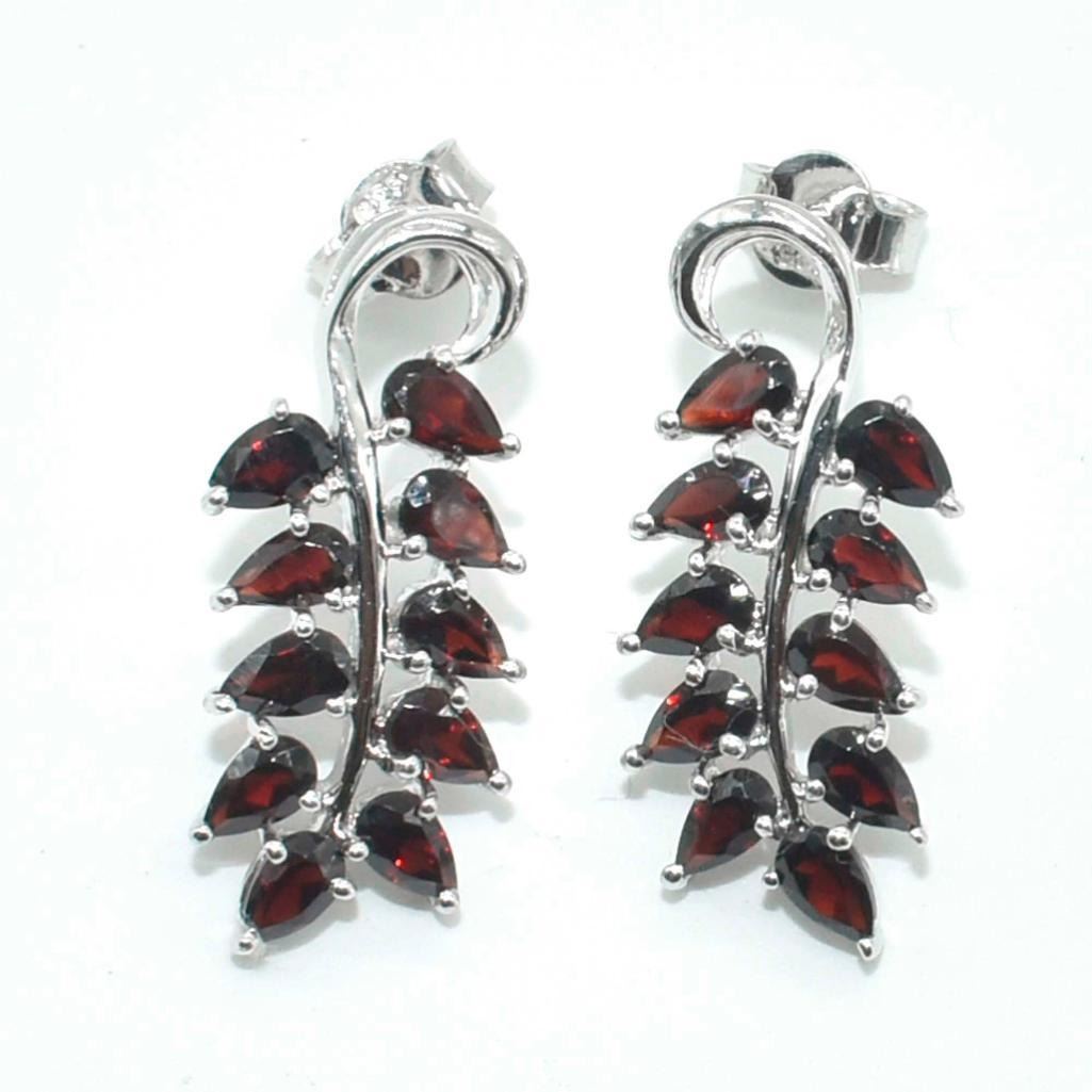 Silver Garnet(3.6ct) Rhodium Plated Earrings (~Size 0) (~length 0 inches) (~weight 5.7g)