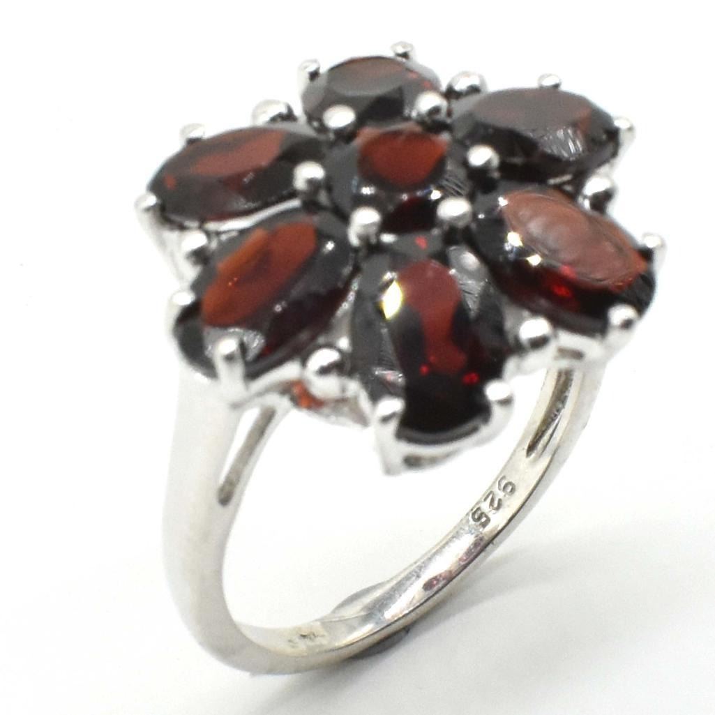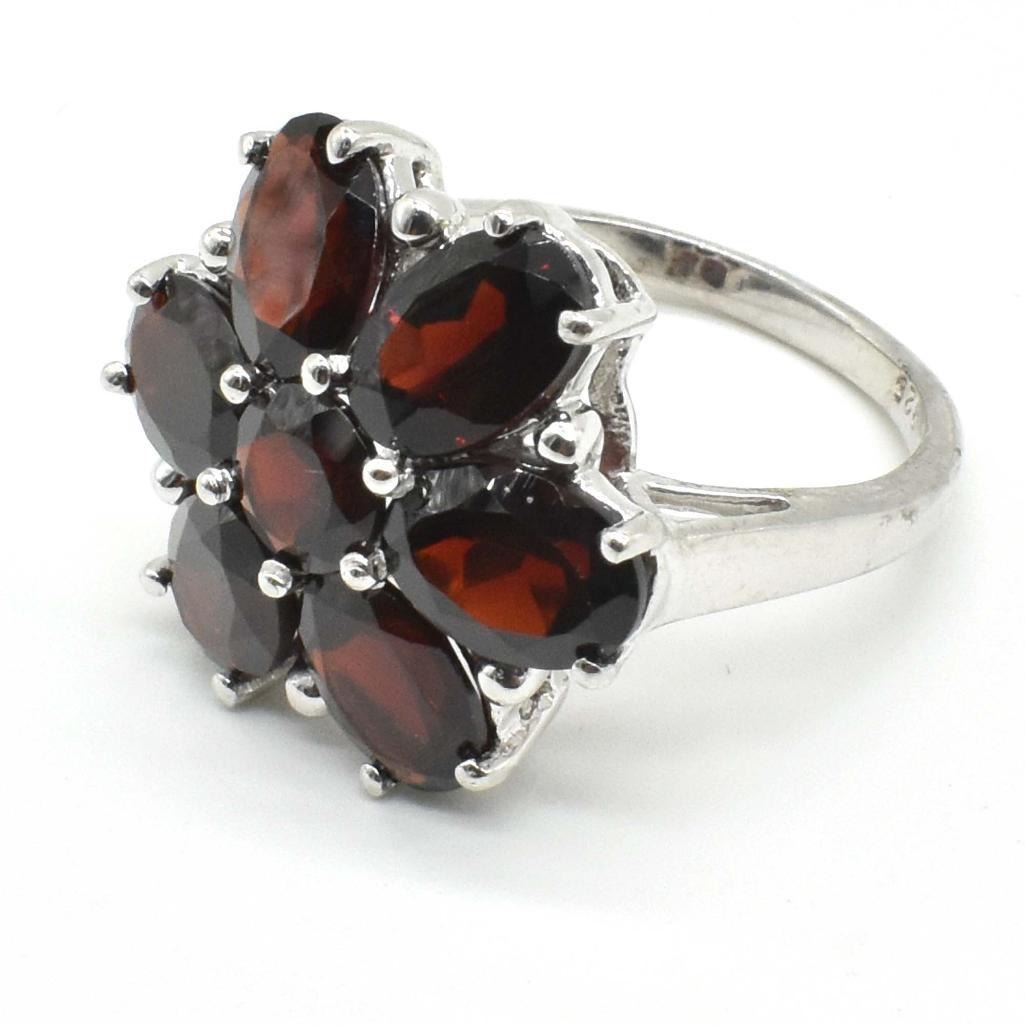 Silver Garnet (5.8ct) Rhodium Plated Ring (~weight 4.7g)