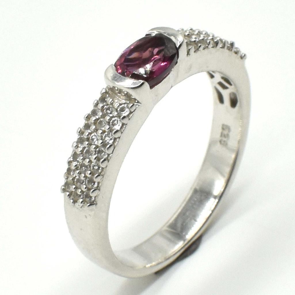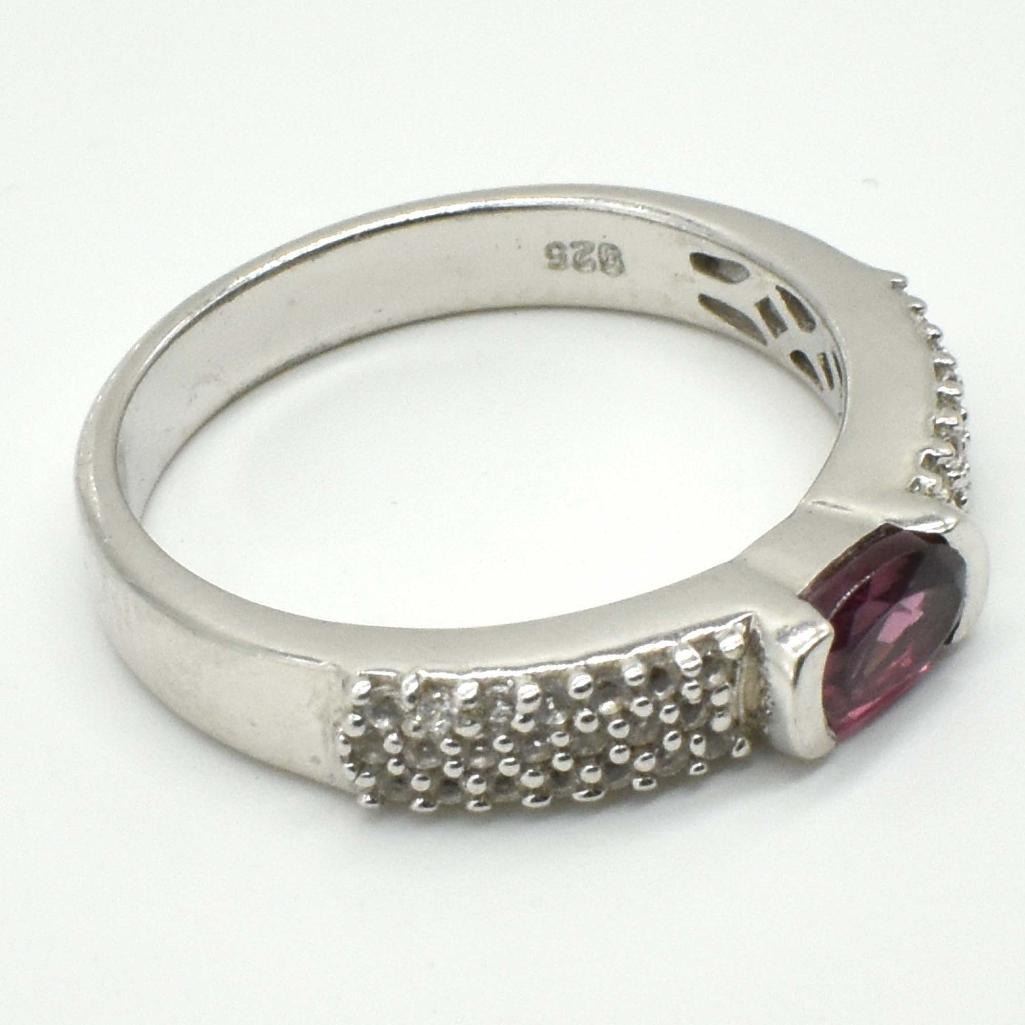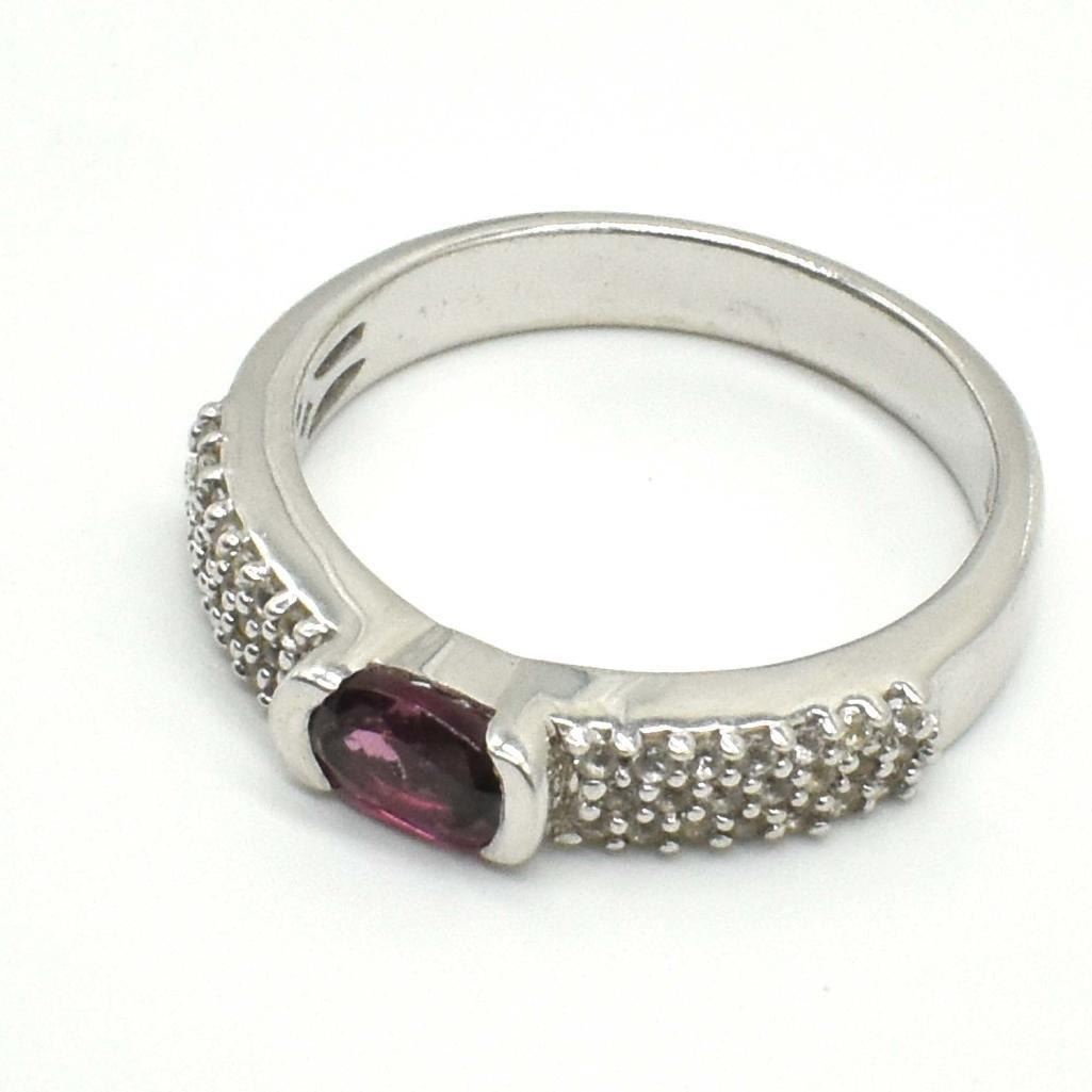 Silver Garnet Cz(0.7ct) Rhodium Plated Ring (~weight 3.05g)