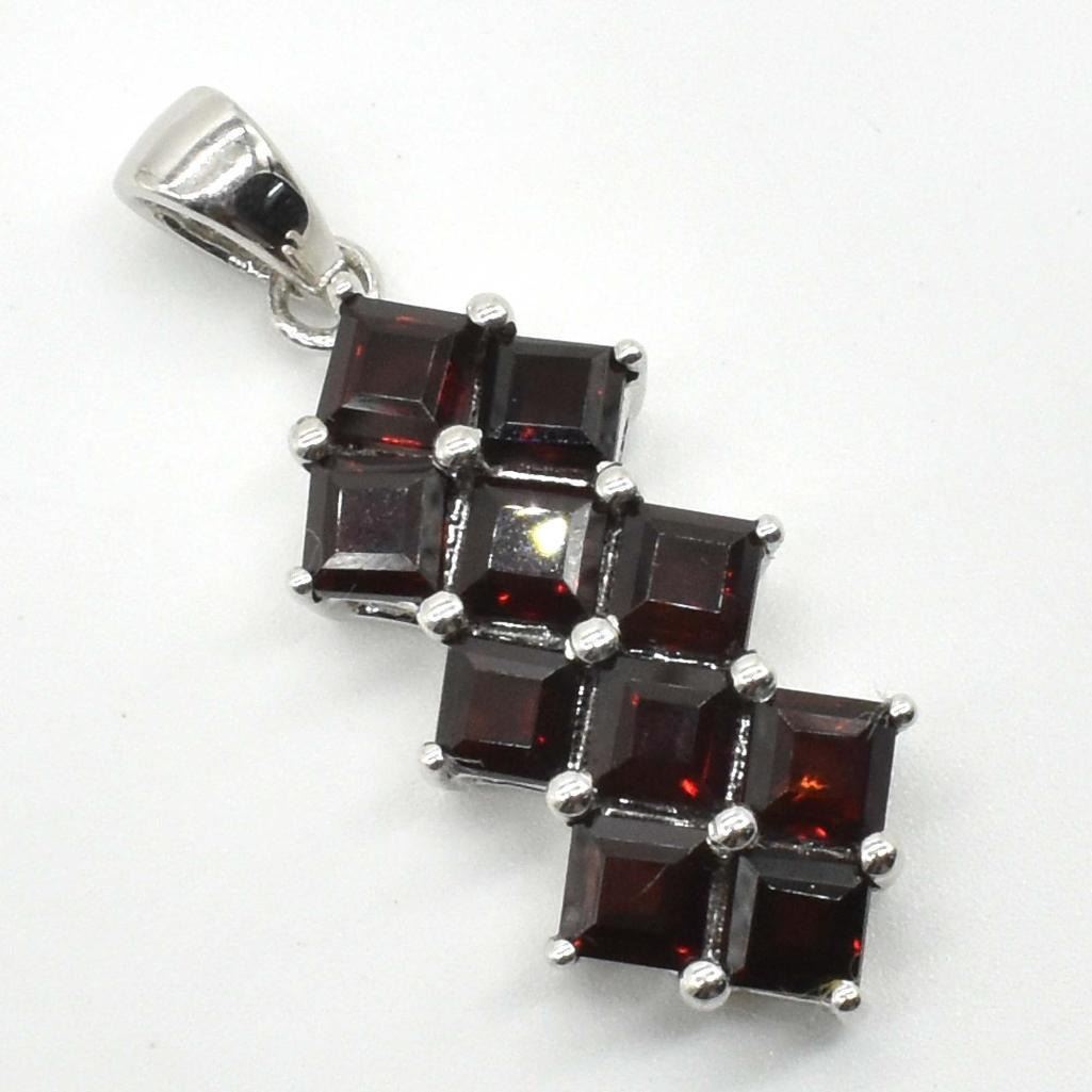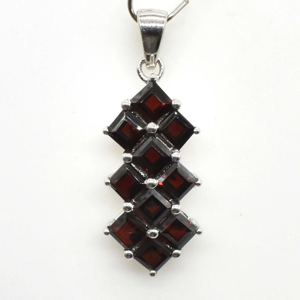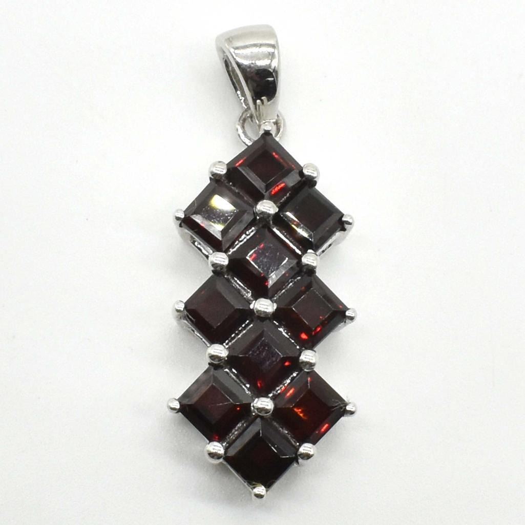 Silver Garnet Cz(2.9ct) Rhodium Plated Pendant (~weight 3.7g)