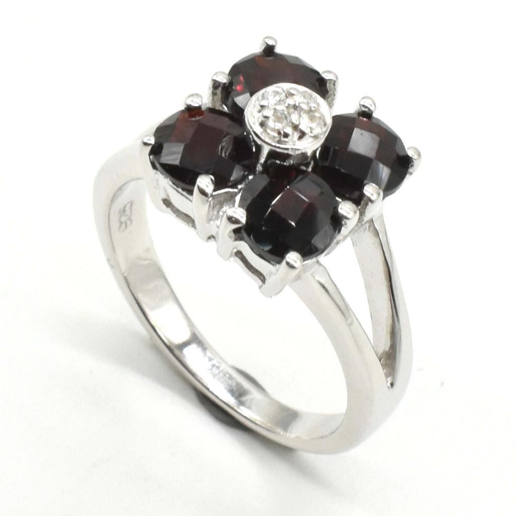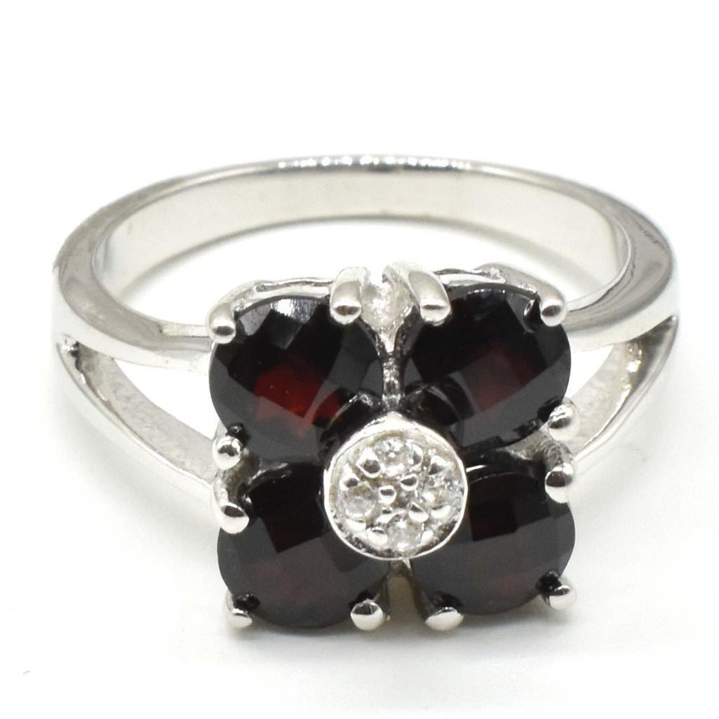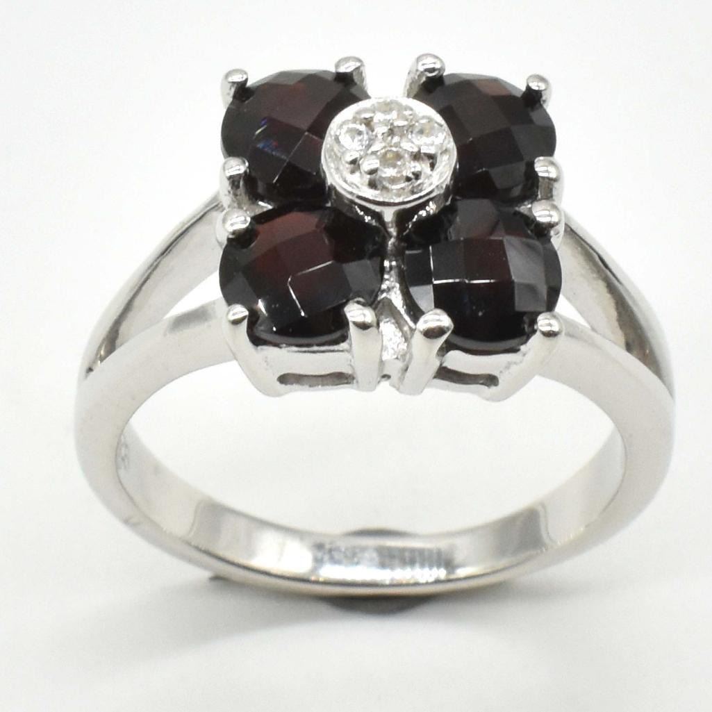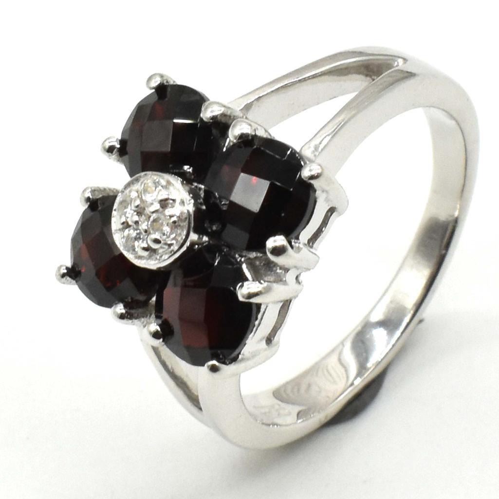 Silver Garnet Cz(4.05ct) Rhodium Plated Ring (~weight 4.05g), Suggested Retail Value $300