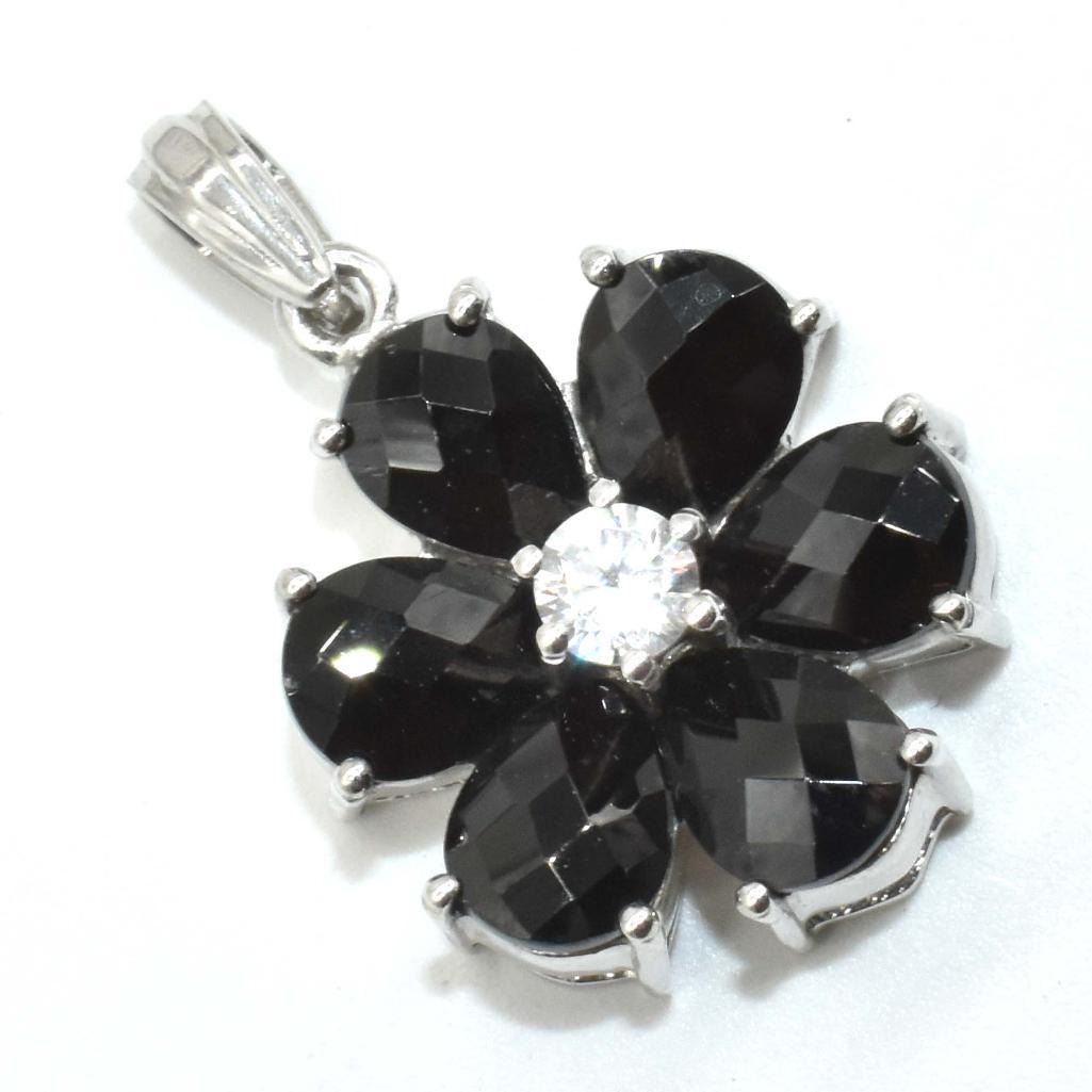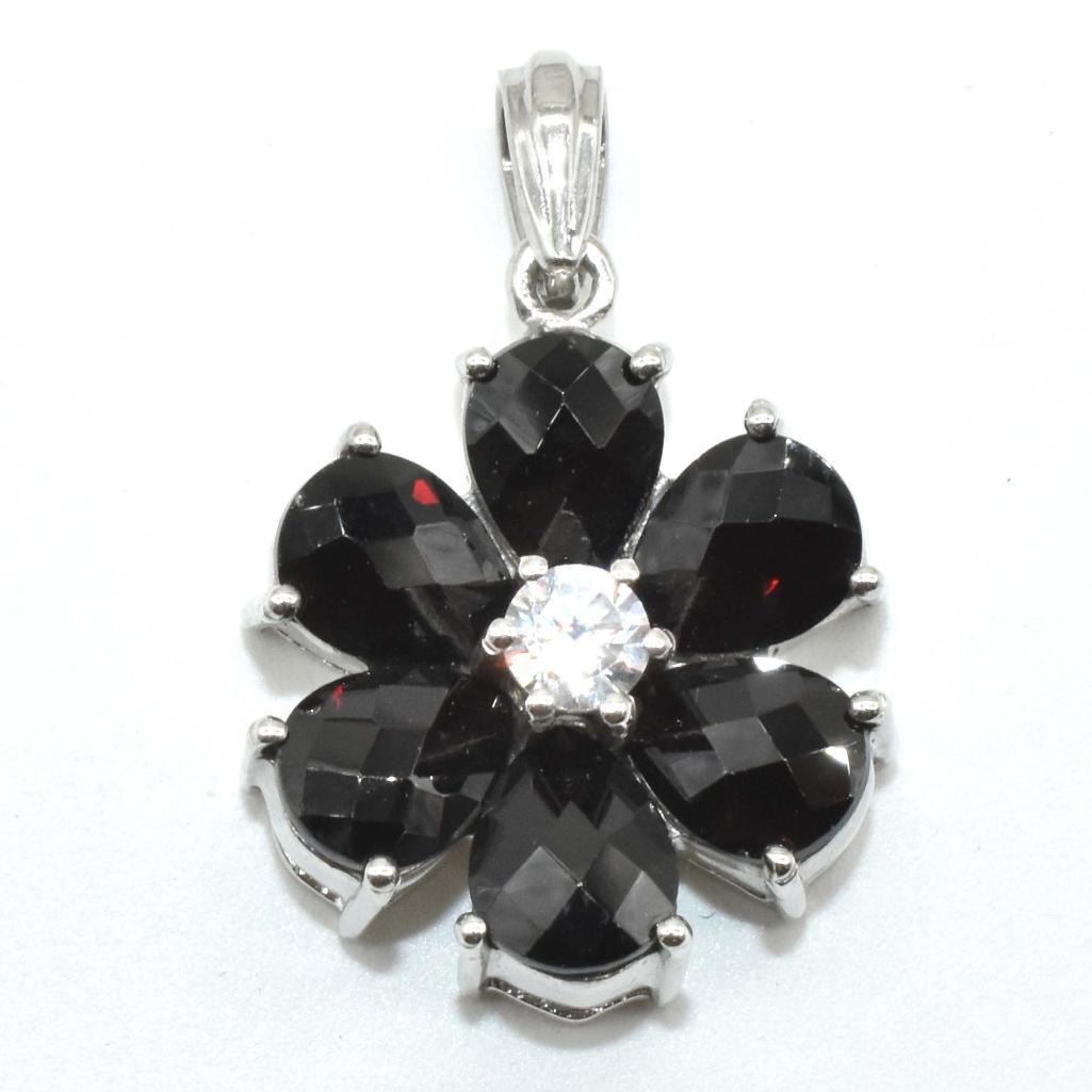 Silver Garnet Cz(6.5ct) Rhodium Plated Pendant (~weight 6.5g), Suggested Retail Value $400