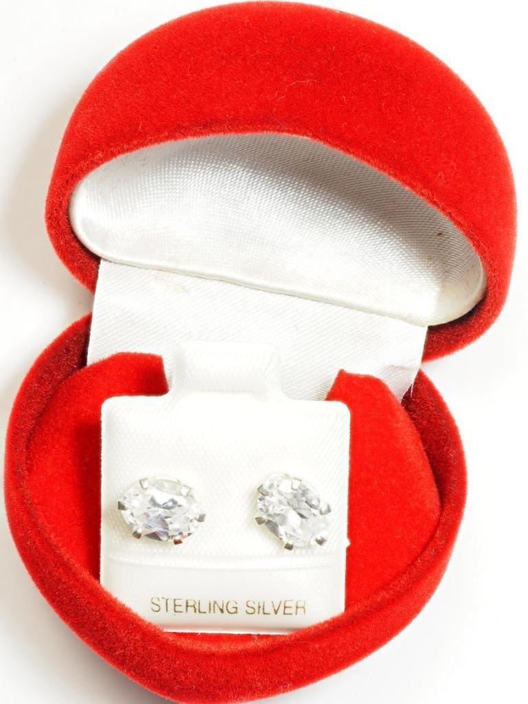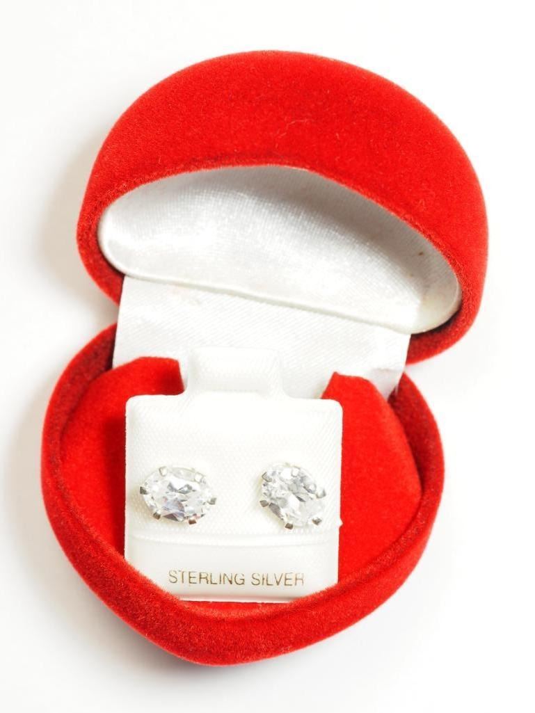 Silver Genuine Cubic Zirconia (4.28ct) (8x6mm) Earrings . Retail $40