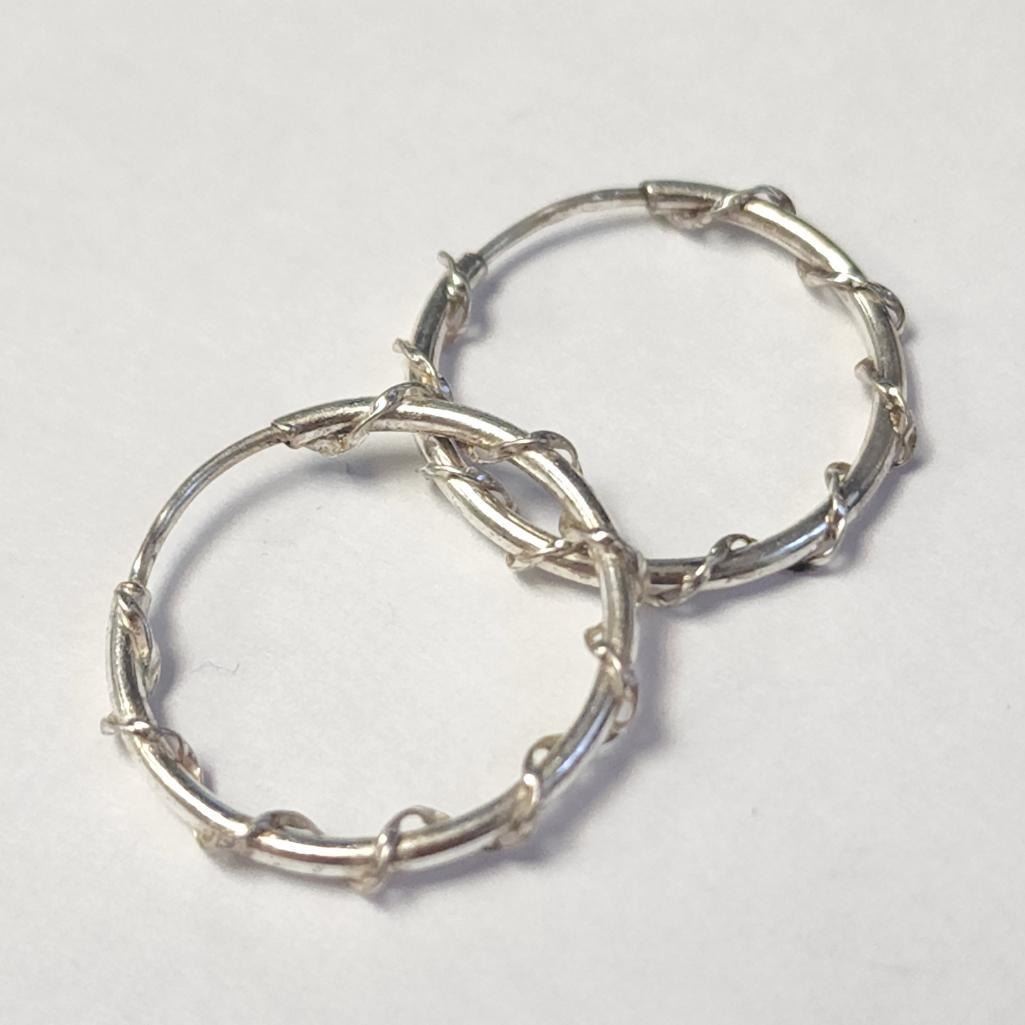 Silver Hoop Earrings (~Size )(Ring is resizable for $40) (~length inches), Suggested Retail Value $50