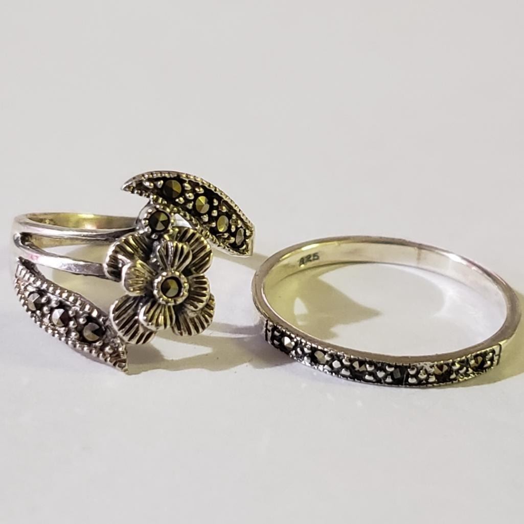 Silver Lot Of 2 Marcasite Ring (~weight 4g), Suggested Retail Value $120