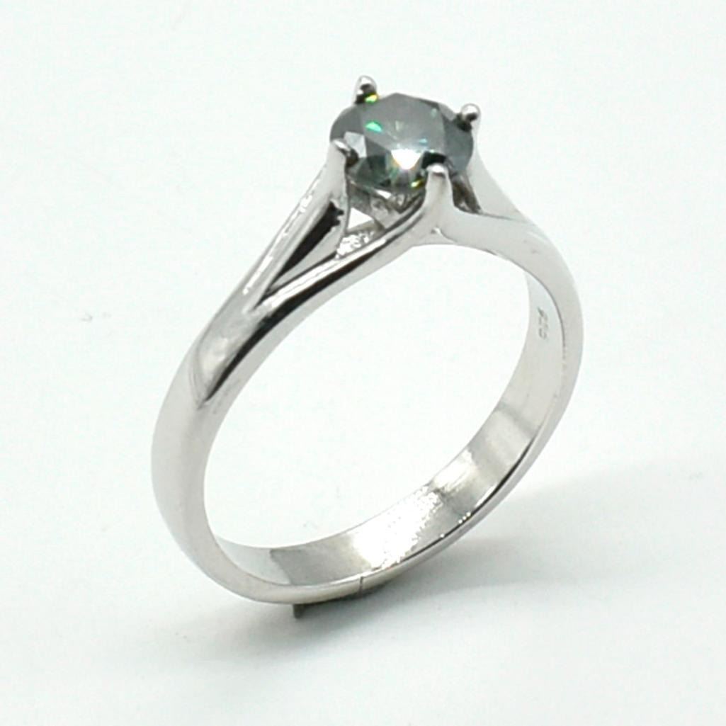 Silver Moisanite(1.25ct) Rhodium Plated Ring (~weight 4.35g)