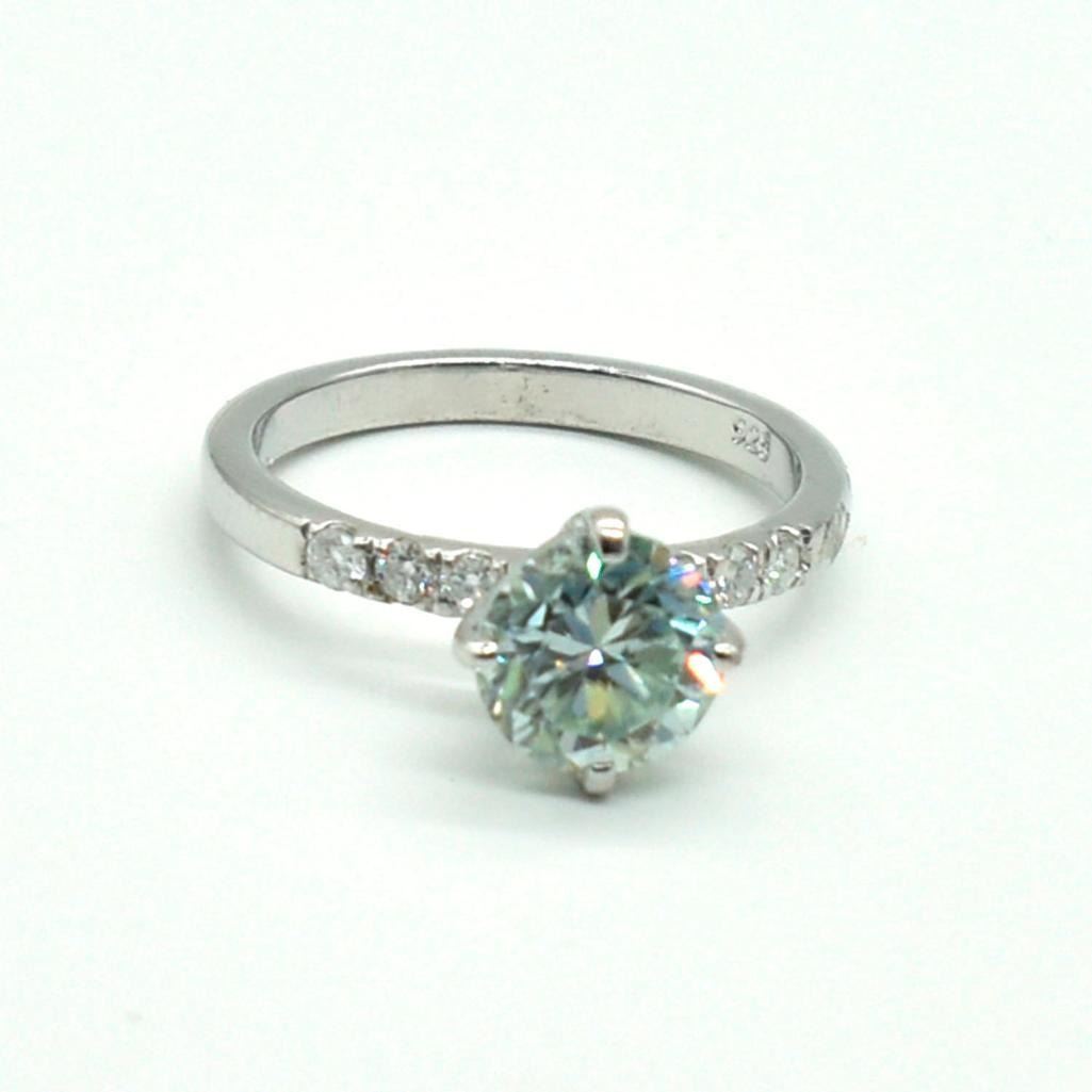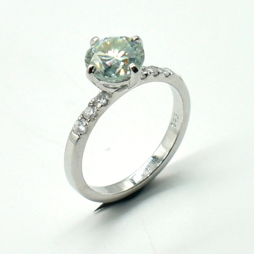 Silver Moisanite(1.65ct) Rhodium Plated Ring (~weight 2.65g)