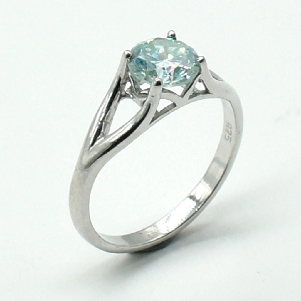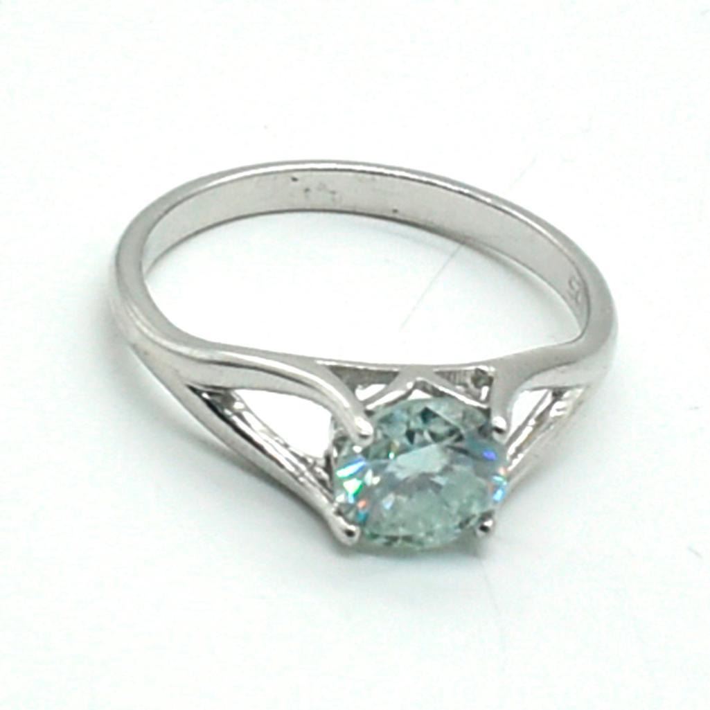 Silver Moisanite(2.1ct) Rhodium Plated Ring (~weight 2.95g)