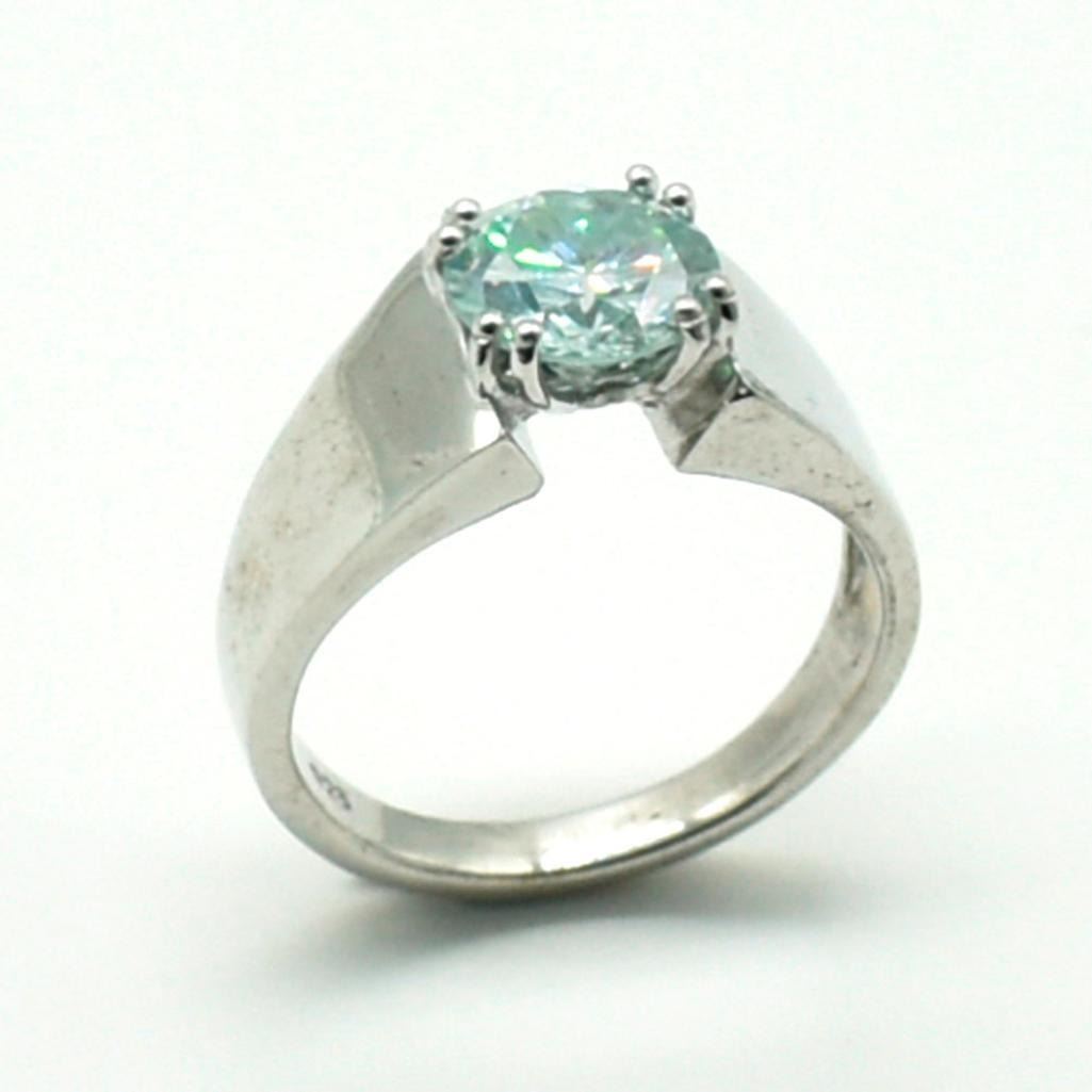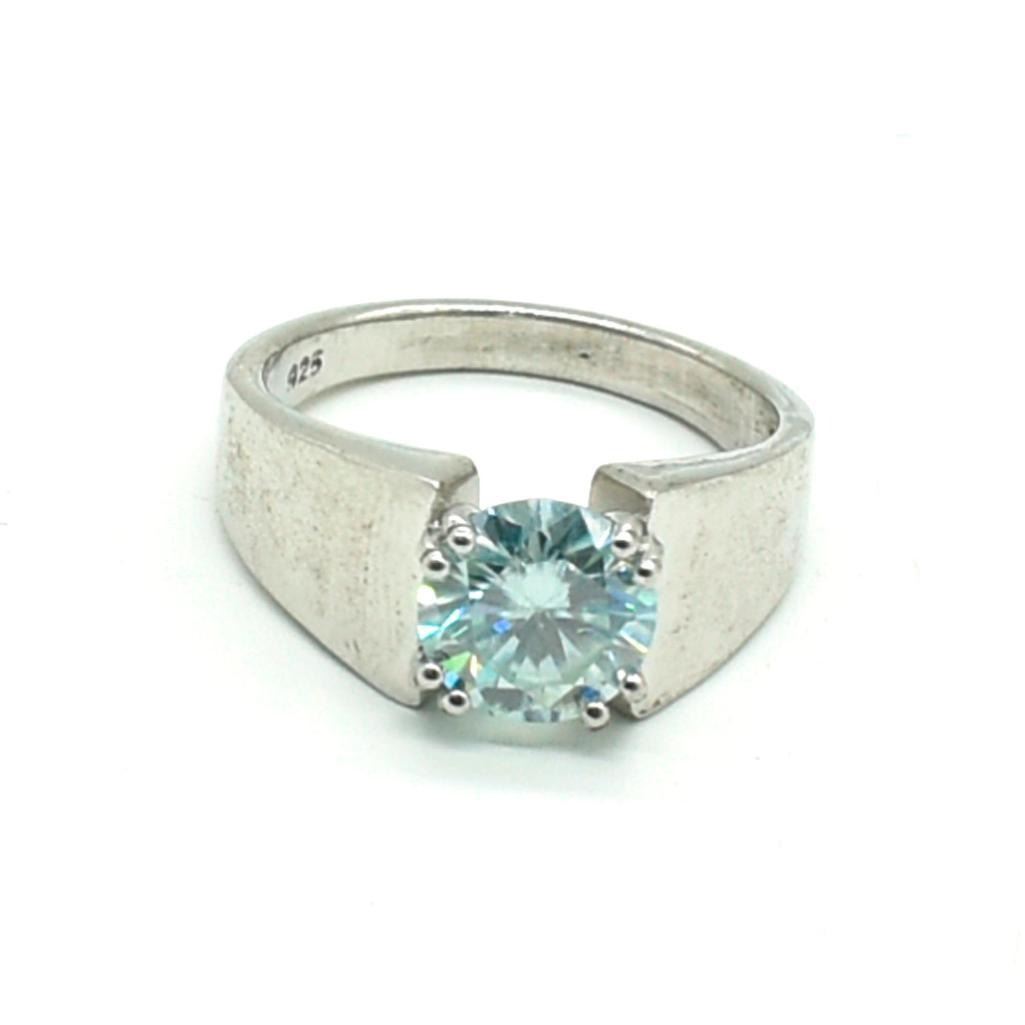 Silver Moisanite(2.25ct) Rhodium Plated Mens Ring Ring (~weight 6.3g)