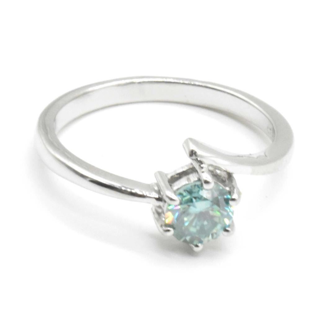 Silver Moissanite (Round 6 Mm)(0.7ct) Rhodium Plated Test And Looks Better Than Diamond Ring (~Size 6.75) (~length cm) (~weight 1.95g)
