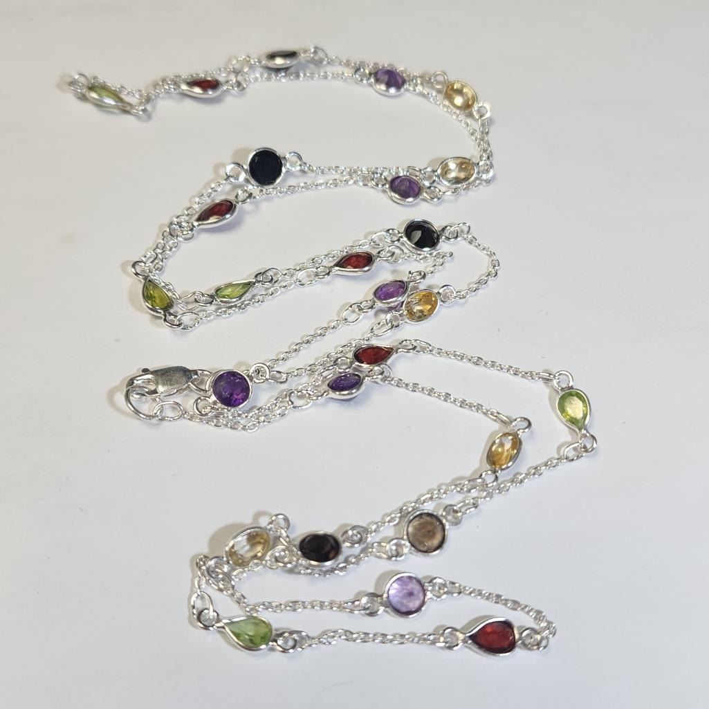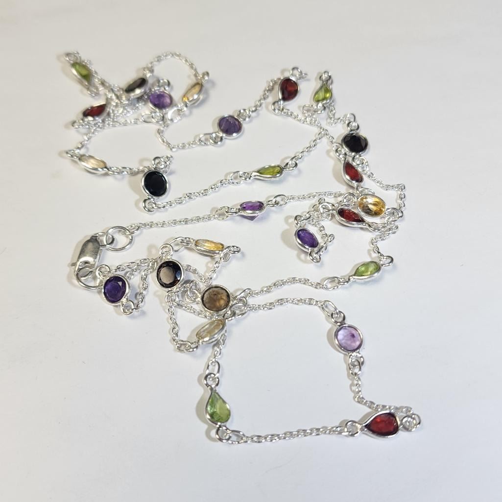 Silver Mutil Genuine Gemstone 36"(20ct) Necklace, Suggested Retail Value $480