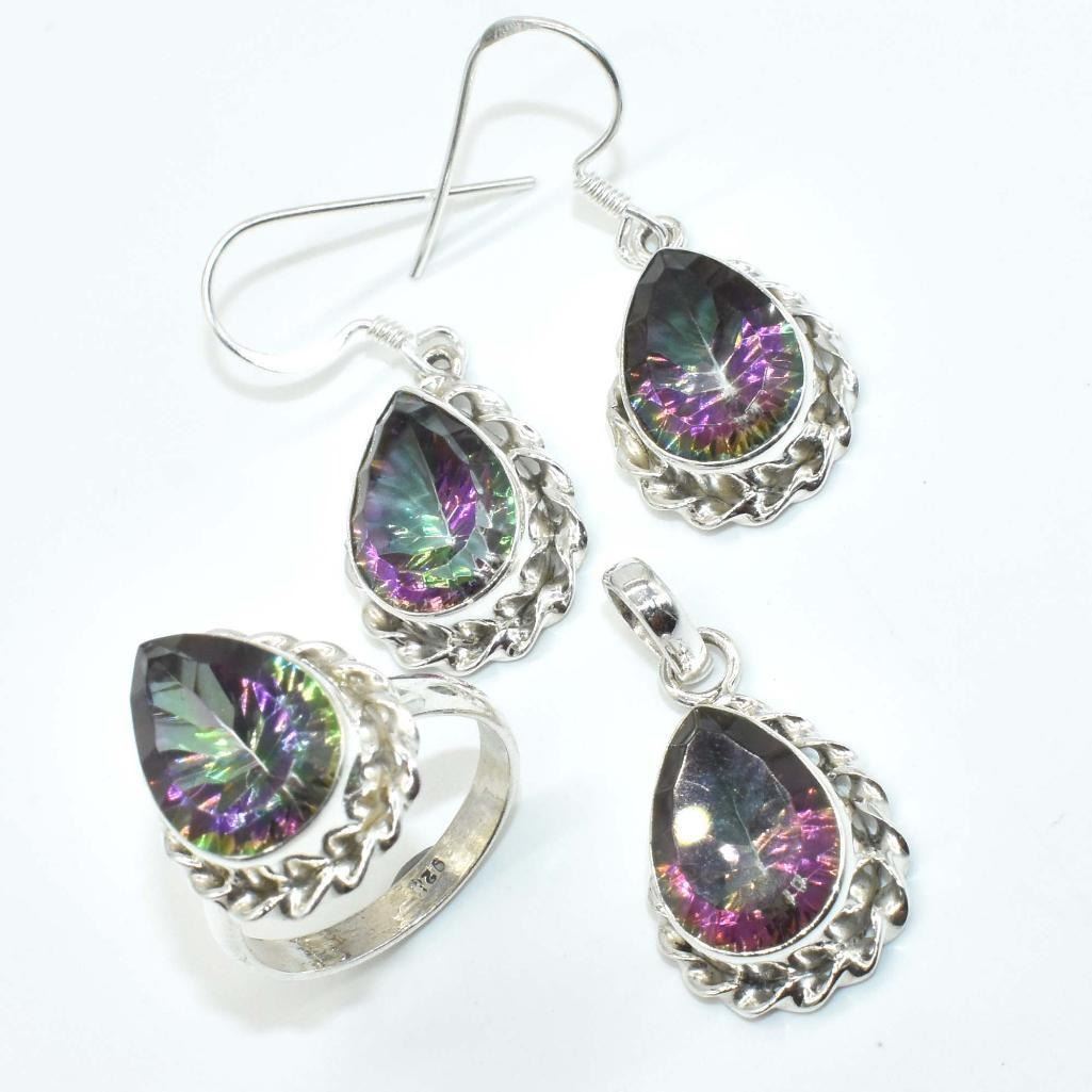 Silver Mystic(32.4ct) Earring Ring Pendant Set (~weight 14.95g), Suggested Retail Value $1200 (Estimated Selling Price from $69 to $138)