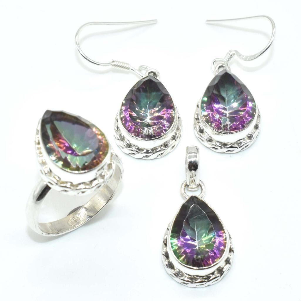Silver Mystic(32.4ct) Earring Ring Pendant Set (~weight 16.45g), Suggested Retail Value $500 (Estimated Selling Price from $75 to $150)