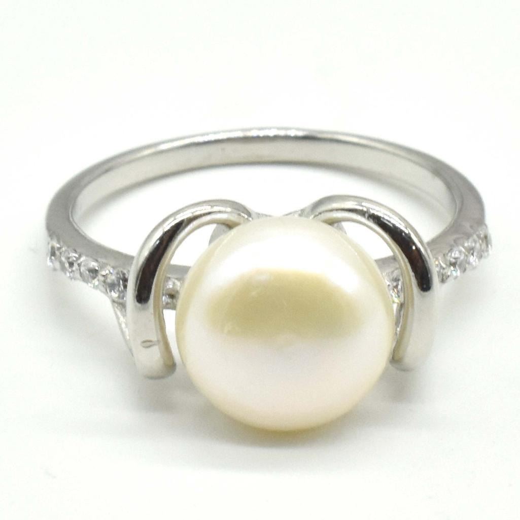 Silver Pearl Cz(3.1ct) Rhodium Plated Ring (~weight 3.1g), Suggested Retail Value $300