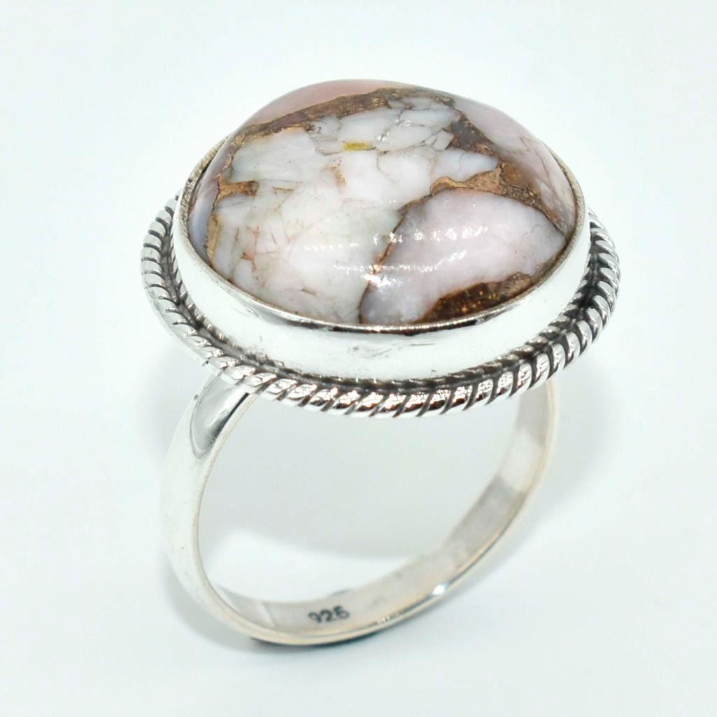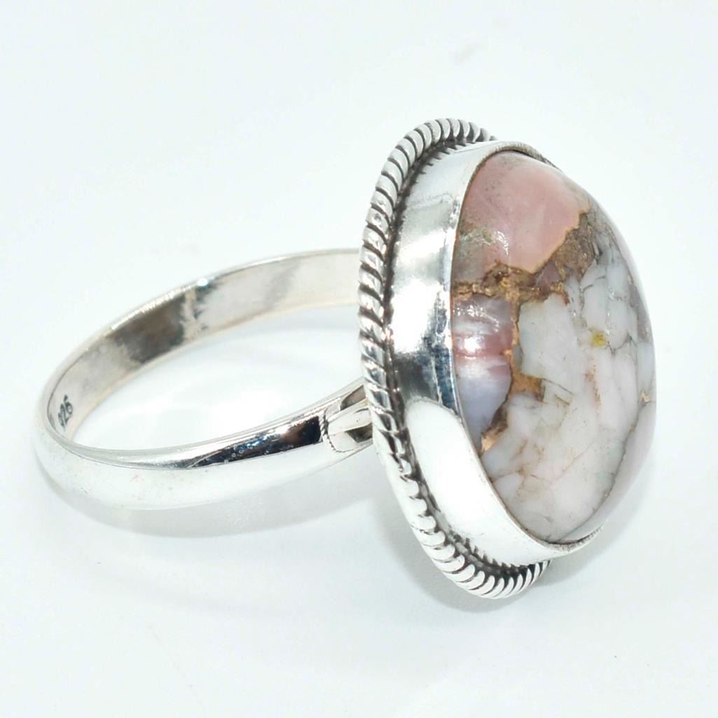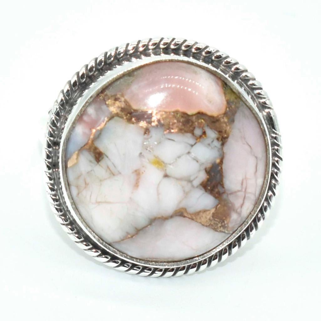 Silver Pink Muhave Turquoise(72ct) Hand Made Ring (~weight 6.1g)