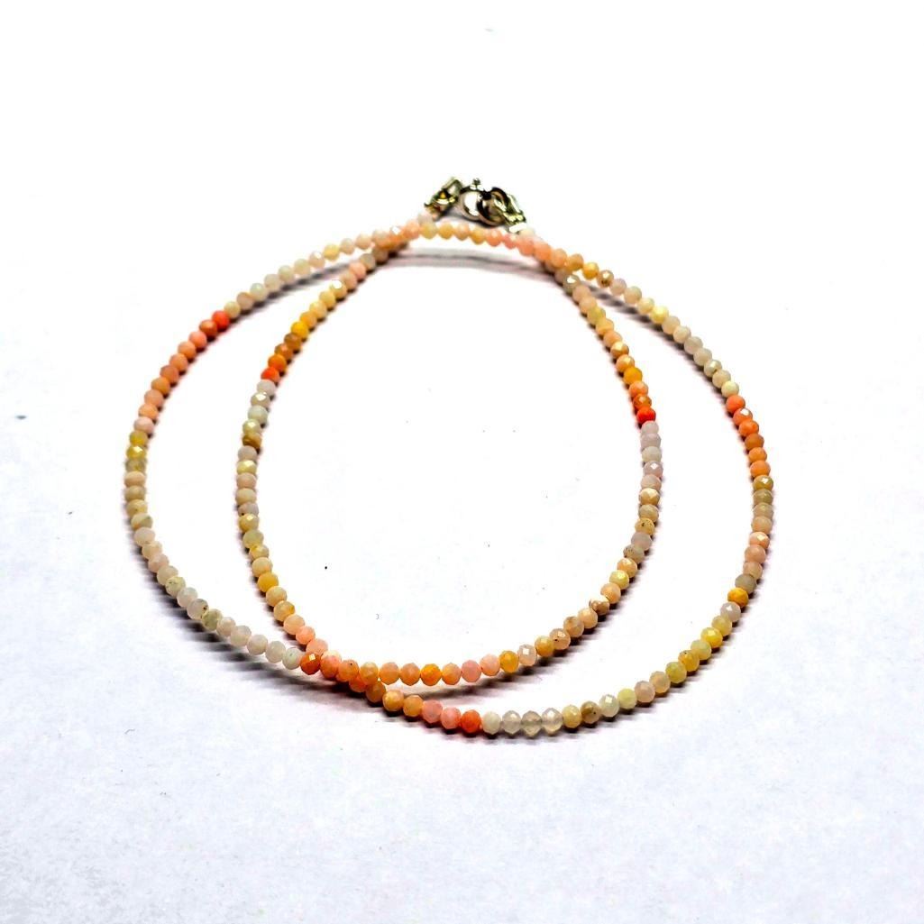 Silver Pink Opal(10.25ct) Beaded Necklace Necklace (~length 16inches) (~weight 2.8g)