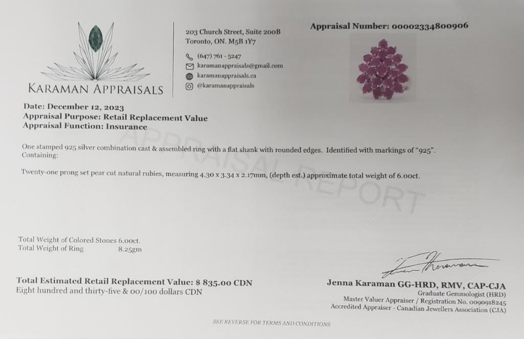 Silver Ruby(6ct) Ring (~Size 6) (~weight 8.25g), Appraised Retail $835