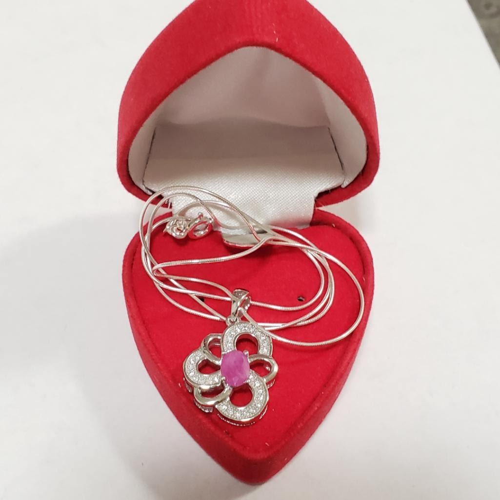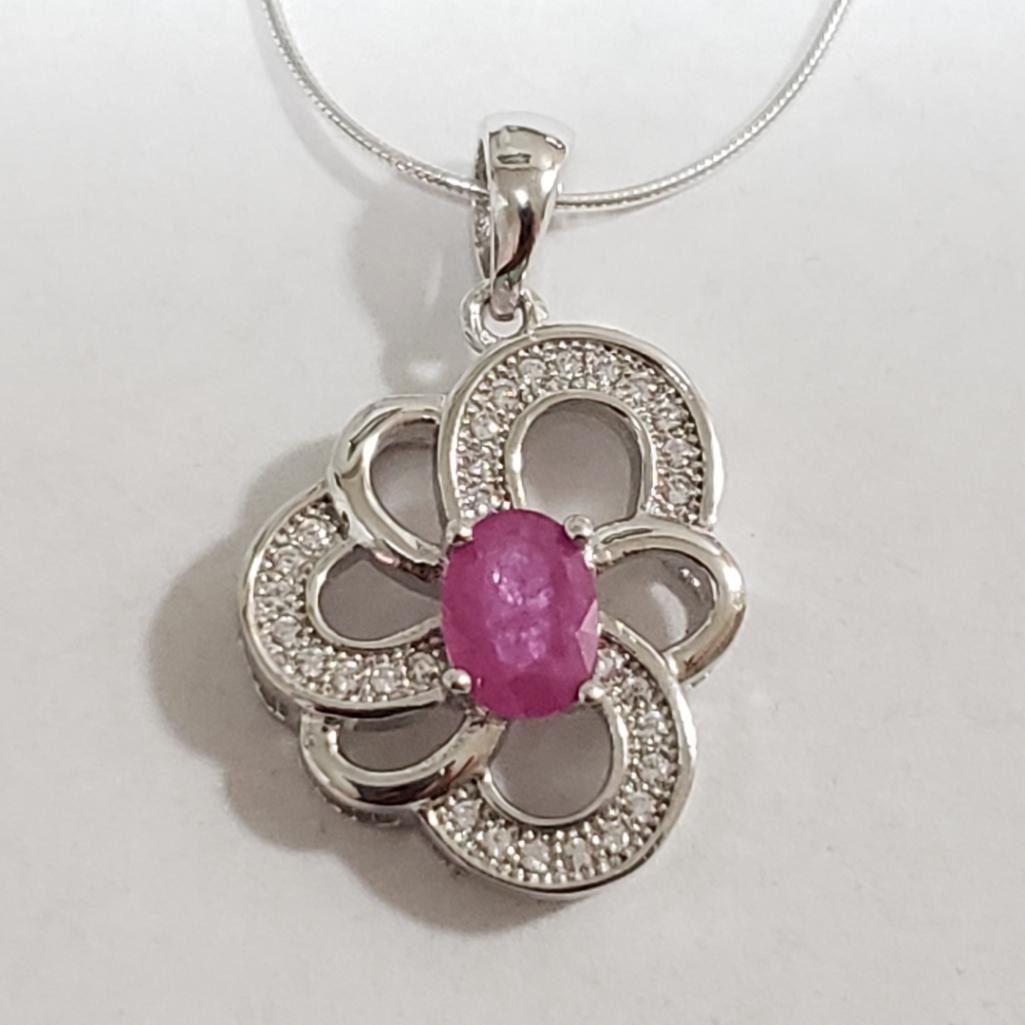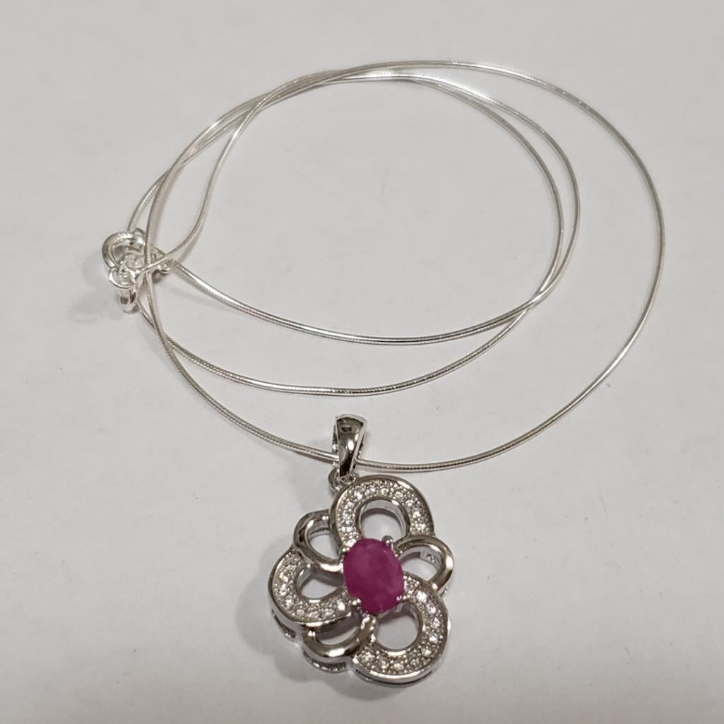 Silver Ruby Cubic Zirconia Necklace (~Size 0) (~length 19 inches) (~weight 5.71g), Suggested Retail Value $240