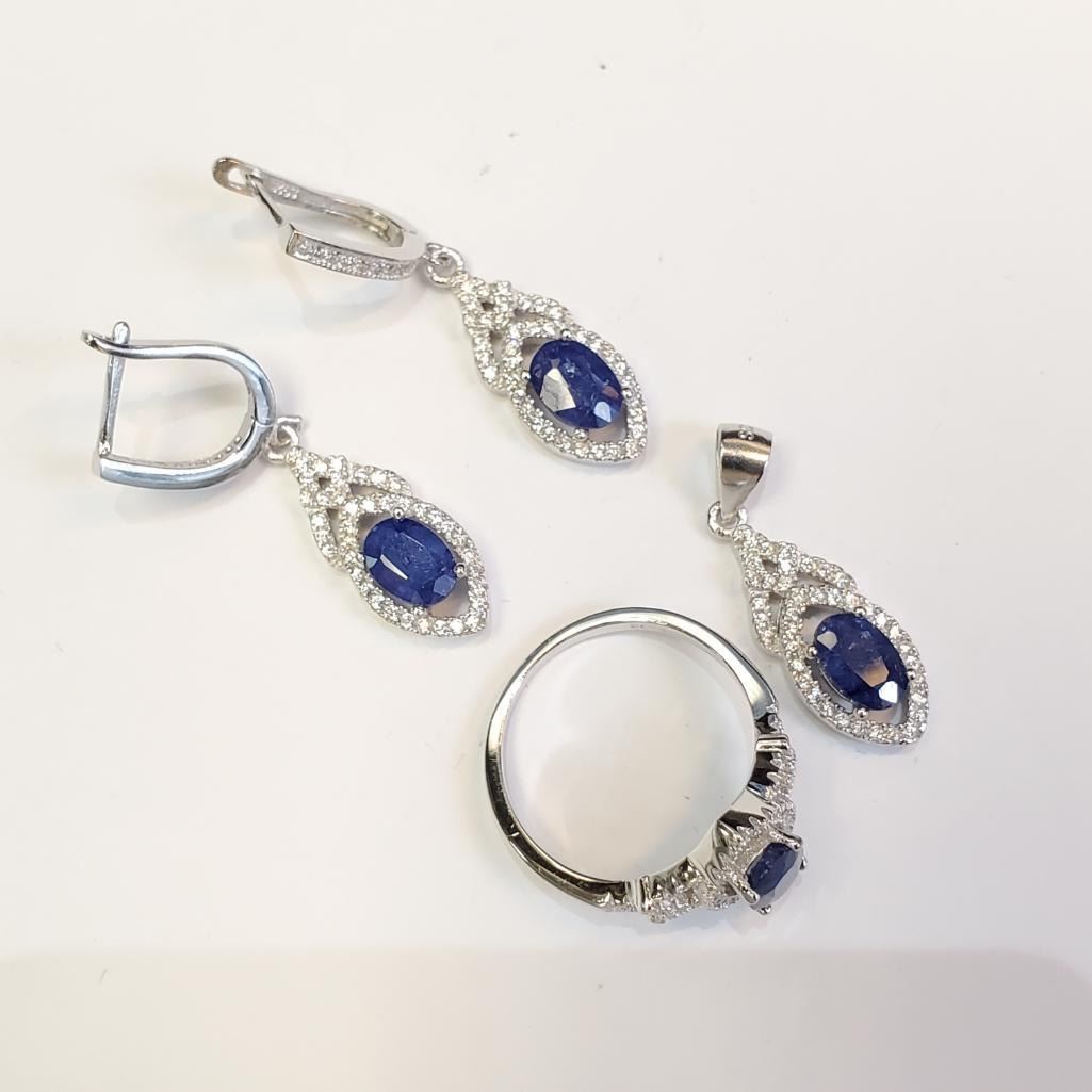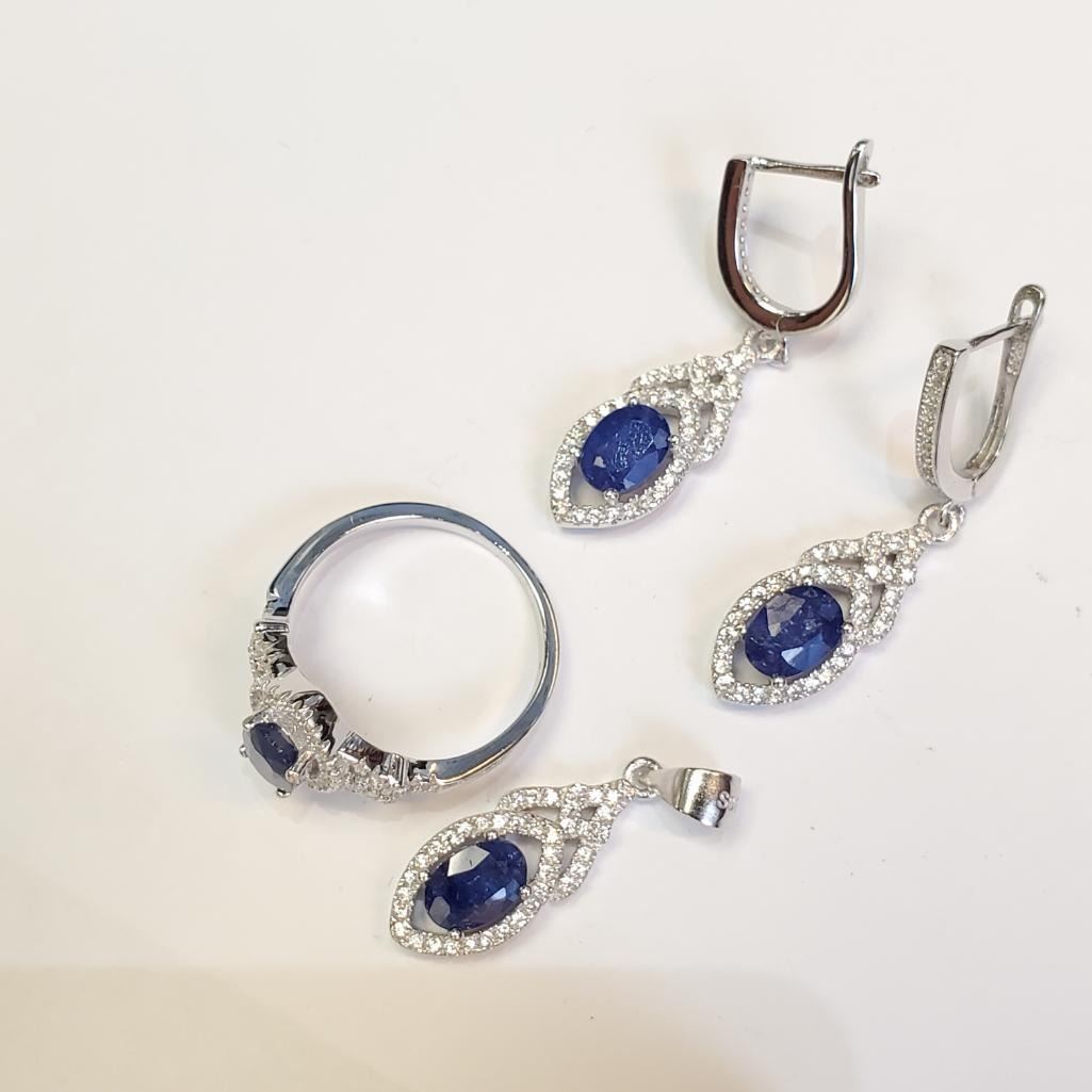 Silver Sapphire(4ct) Ring, Pendant, Earring Set (~weight 10.04g), Suggested Retail Value $610
