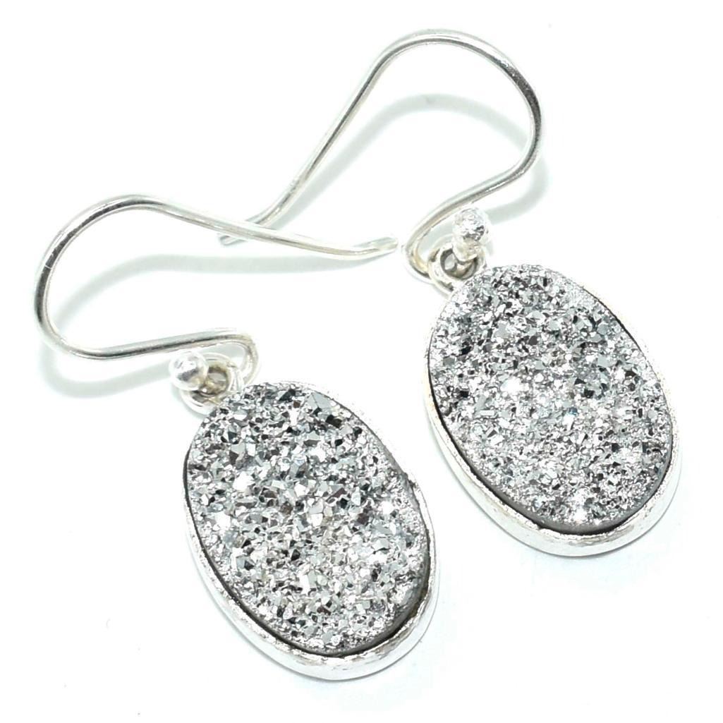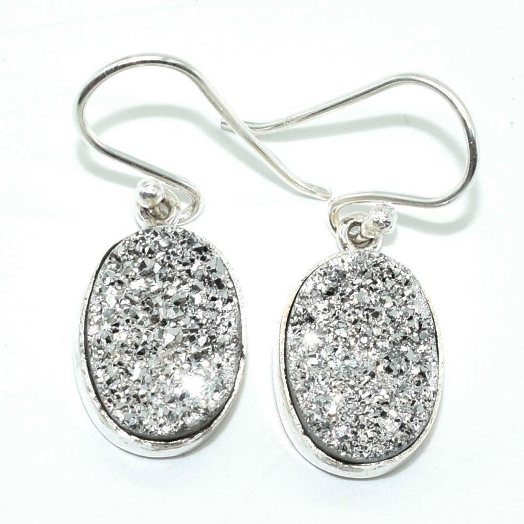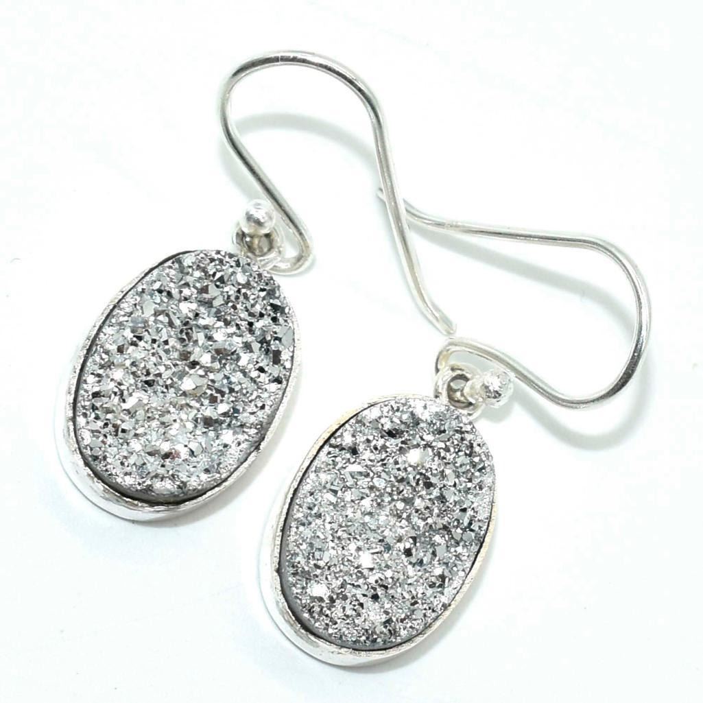 Silver Silver Druzy(12.5ct) Hand Made Earrings (~weight 4.85g)