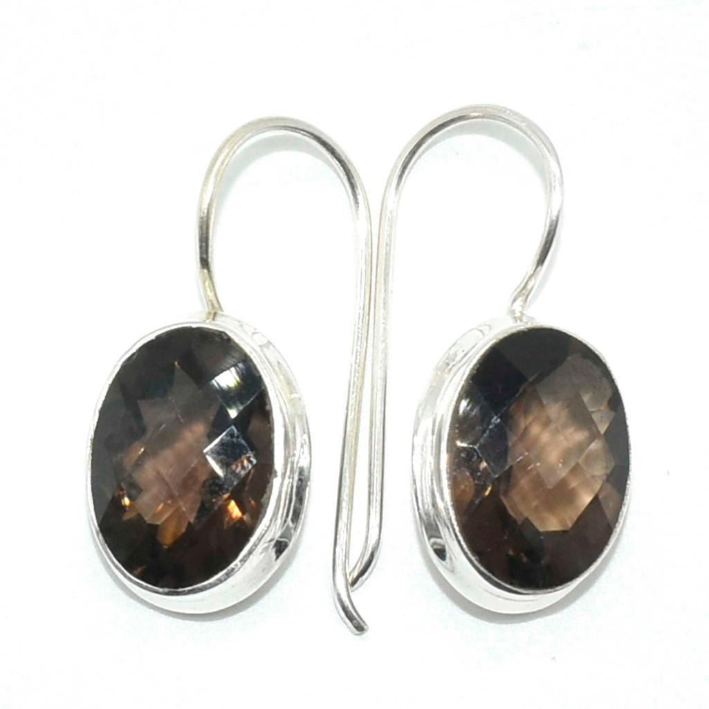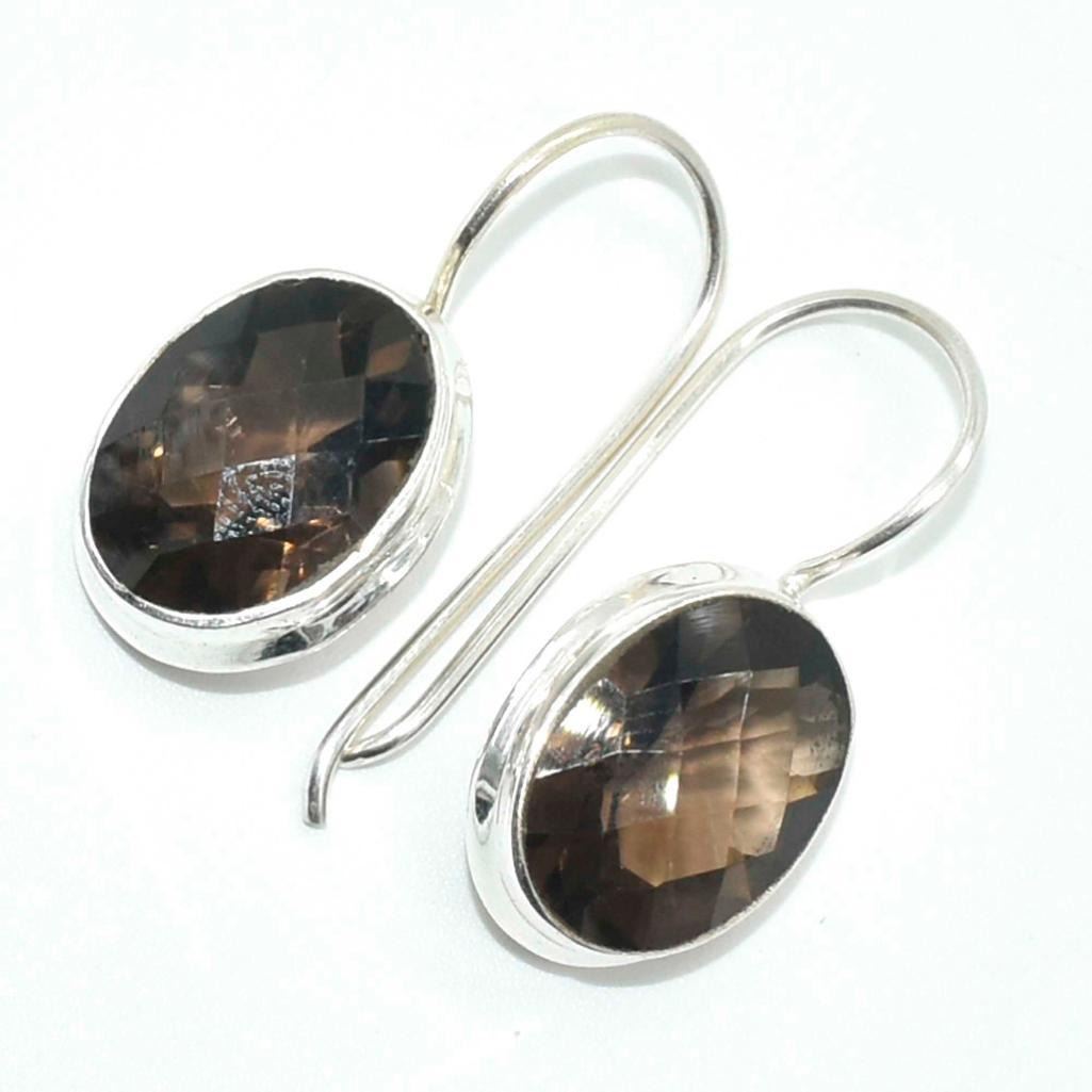 Silver Smokey Quartz(11.5ct) Hand Made Earrings (~weight 5.65g)