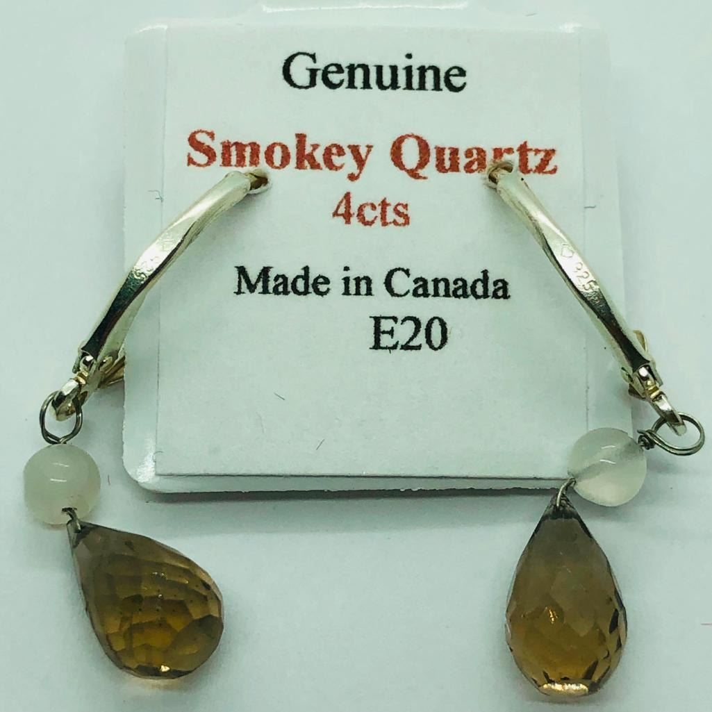 Silver Smokey Quartz(4ct) Earrings, Made in Canada, Suggested Retail Value $100
