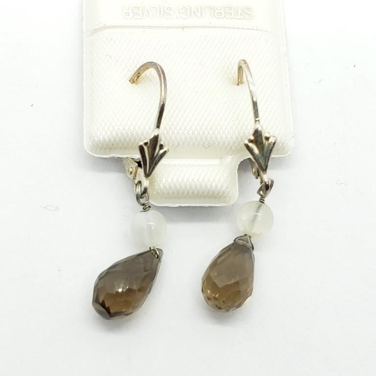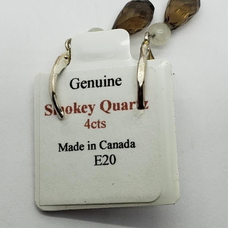 Silver Smokey Quartz(4ct) Earrings, Made in Canada, Suggested Retail Value $40