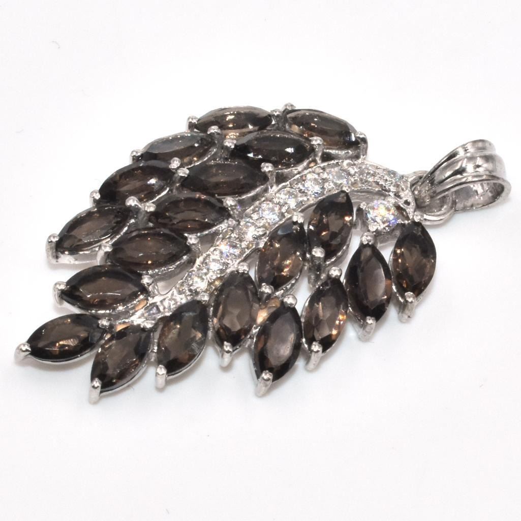 Silver Smokey Quartz Cz(3.1ct) Rhodium Plated Pendant (~Size 0) (~length 0 inches) (~weight 3.2g)