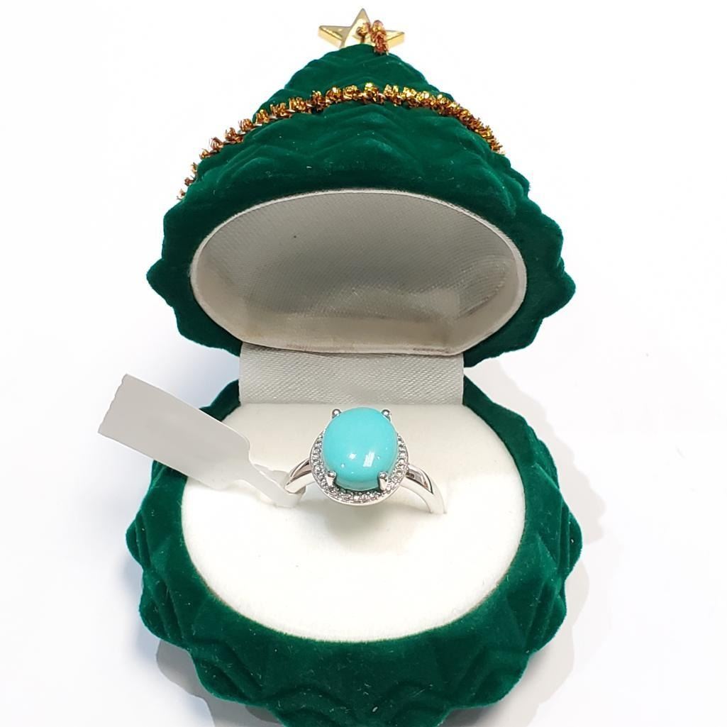 Silver Turquoise Ring (~Size 0) (~length 0 inches), Suggested Retail Value $200