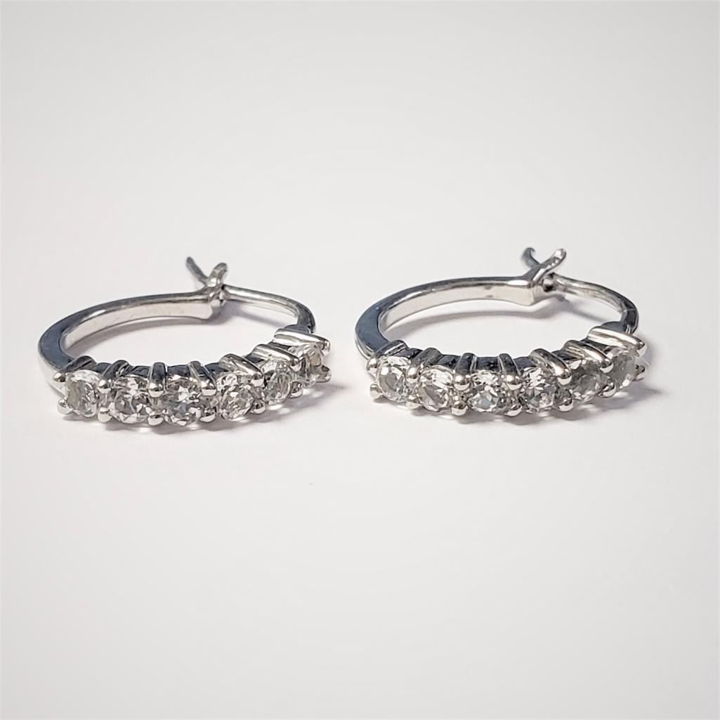 Silver White Topaz Earrings (~Size )(Ring is resizable for $40) (~length inches), Suggested Retail Value $29