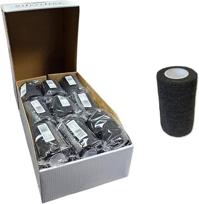 Silverline Cohesive Elastic Bandages, 18 Pieces, Black, 10CM x 4.5M
