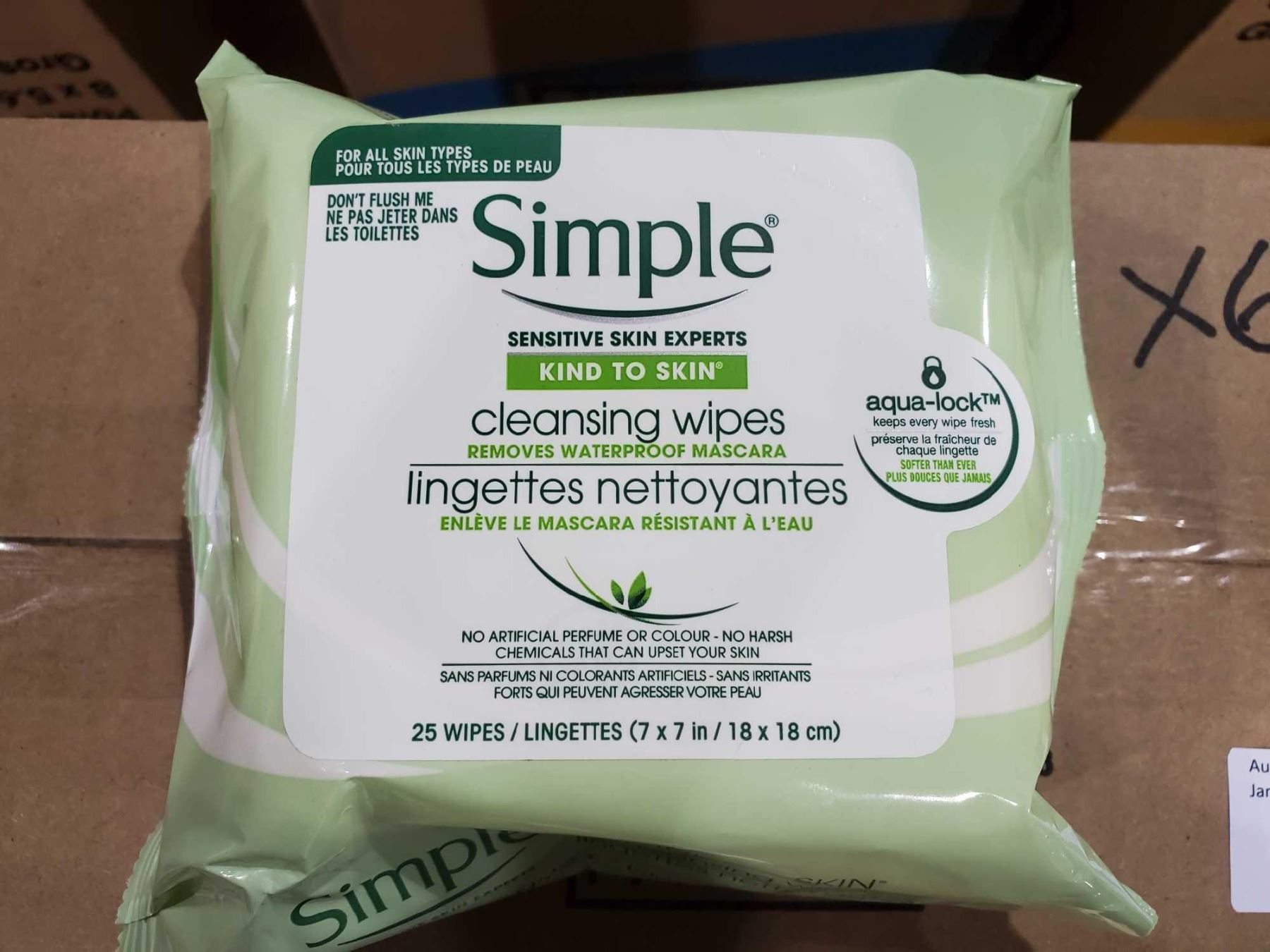 Simple Sensitive Skin Cleansing Wipes, 6X24