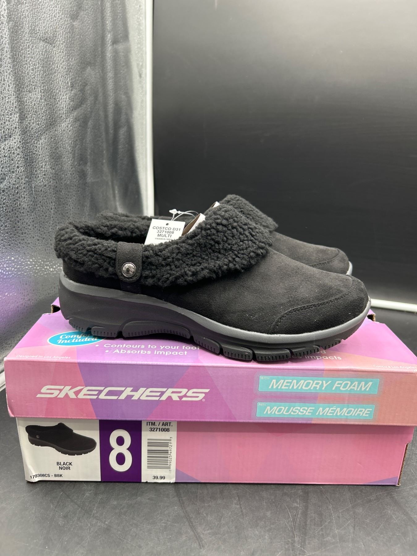 Skechers Women’s Lined Clog Size 8 Black Memory Foam Slip-On Shoes
