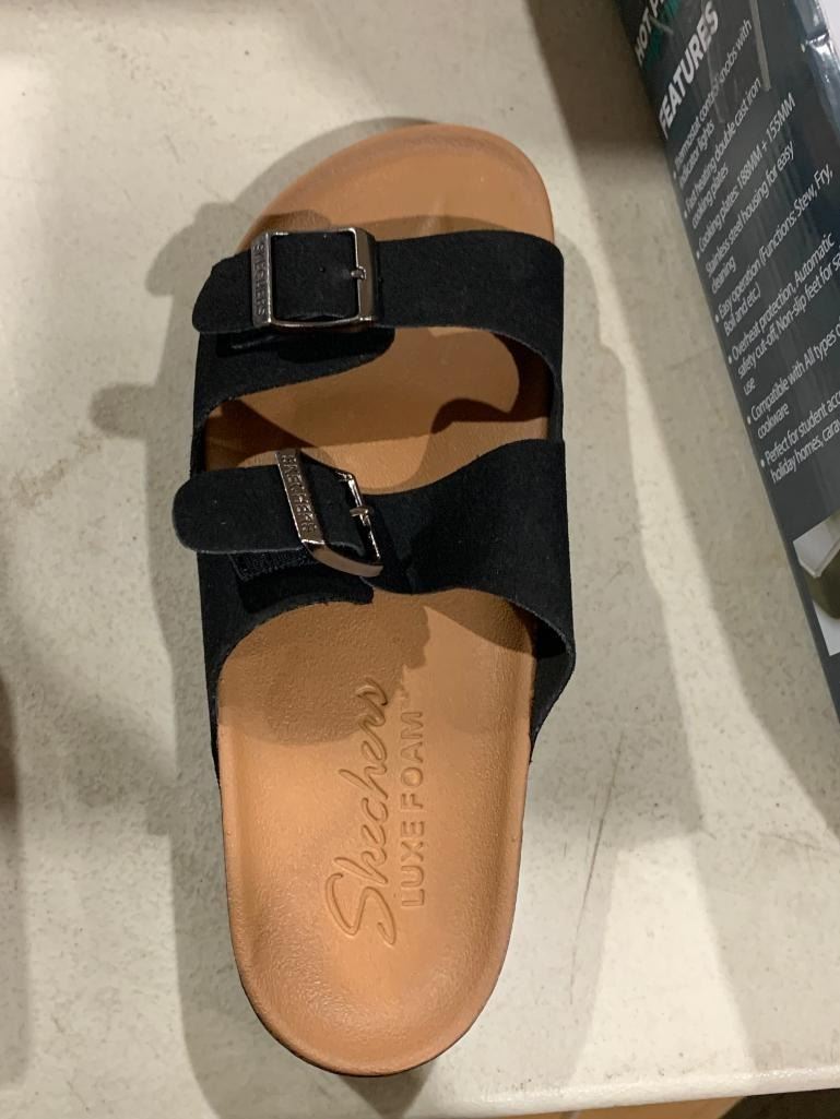 Skechers Women's Luxe Fresh Spirit Two Strap Granola Sandal Black, Size 7