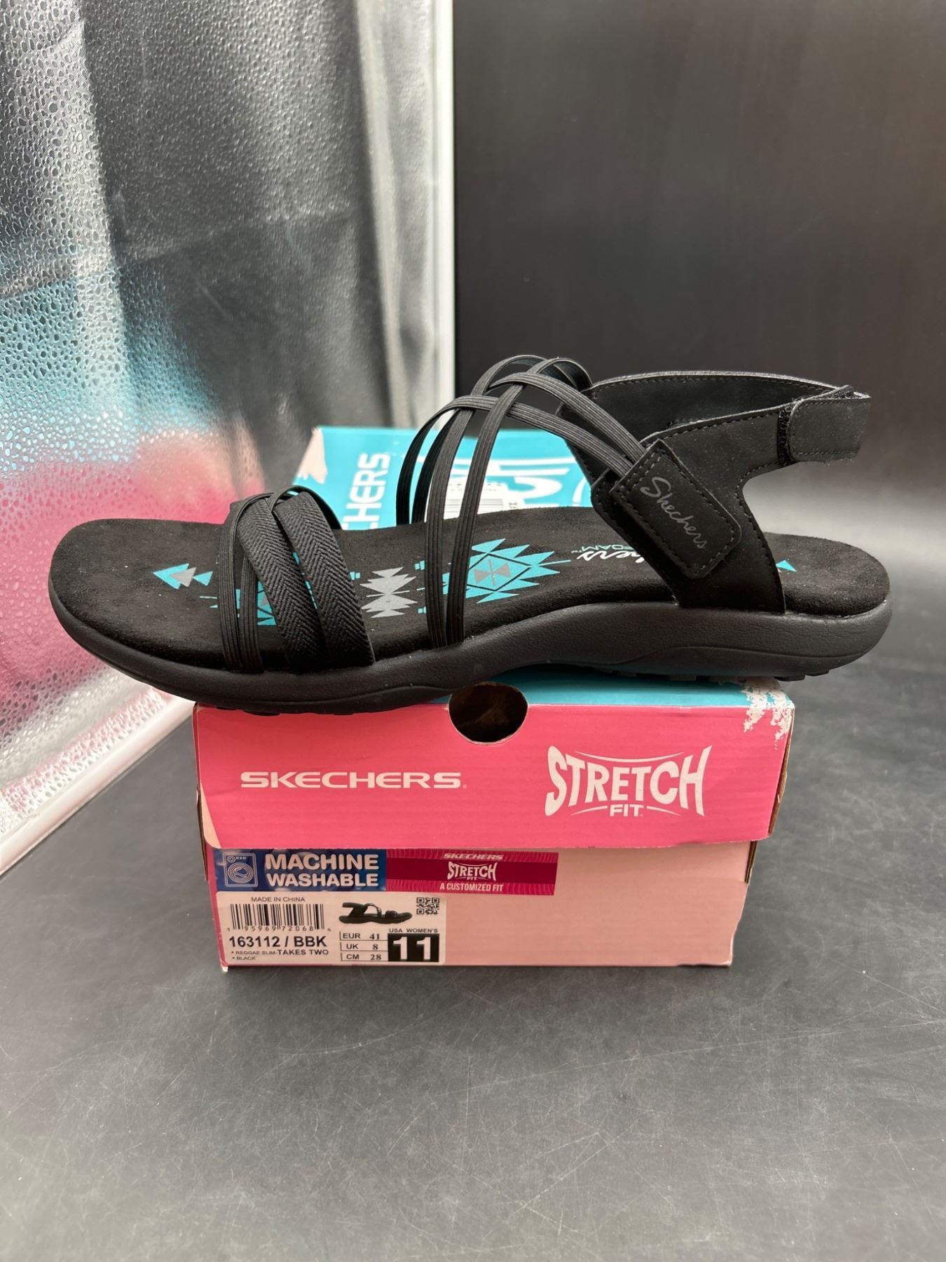 Skechers womens Reggae Slim – Stretch Flex Hands Free Slip-ins Sandal Size 11, Black