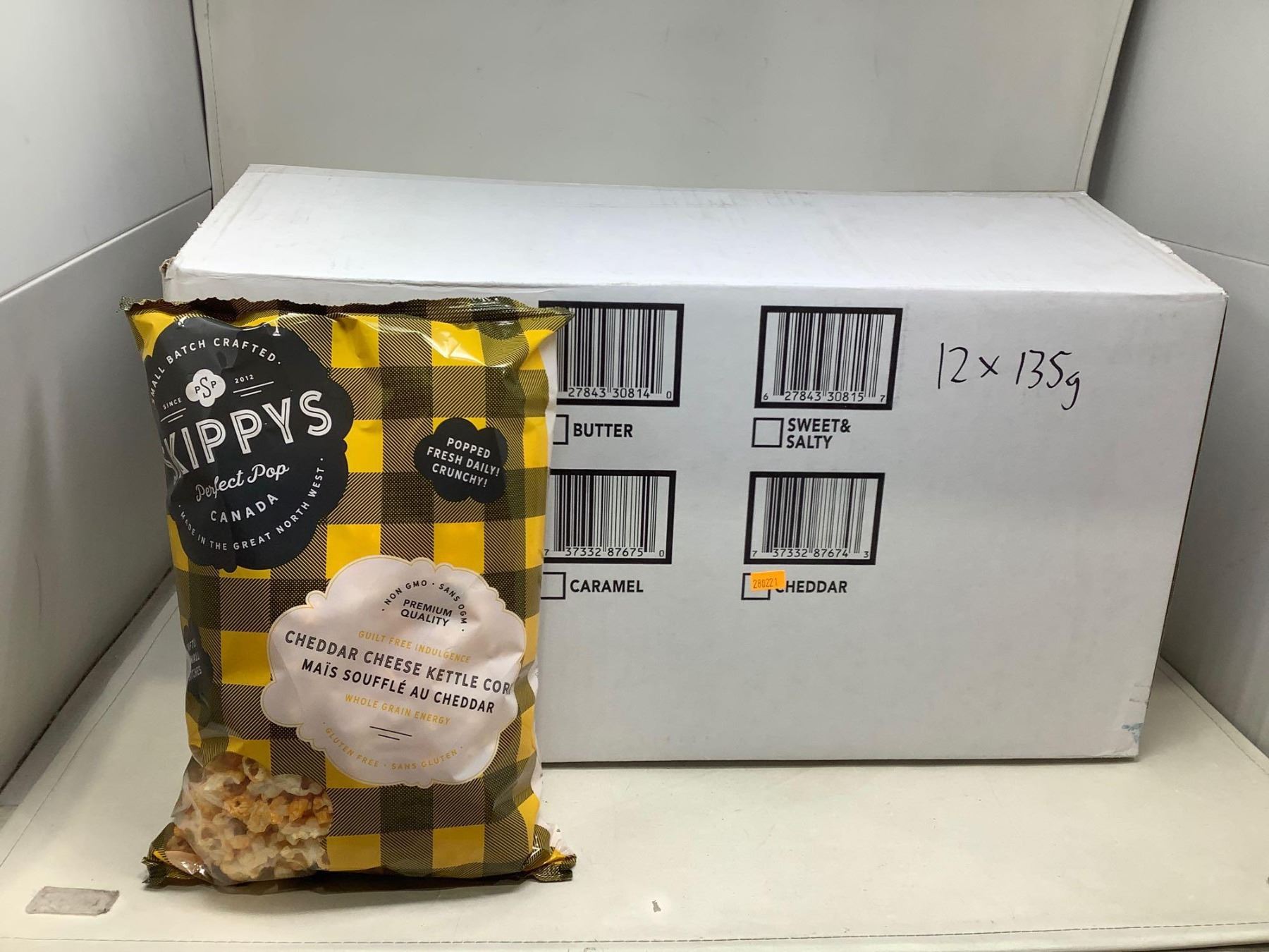 Skippys Cheddar cheese kettle corn case lot of 12 x 135g
