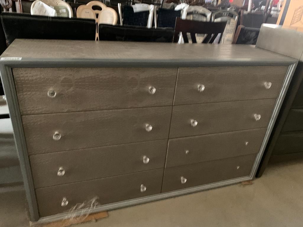 Snakeskin Textured 8 drawer silver dresser