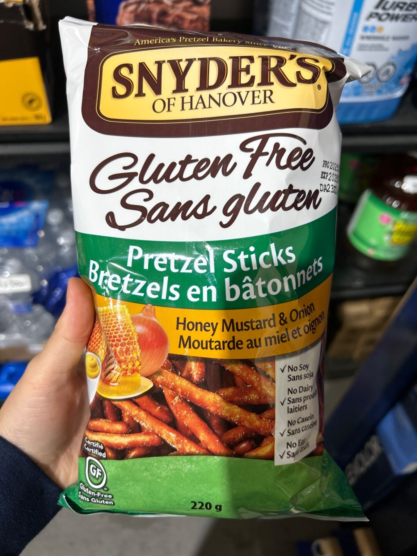 Snyder’s Of Hanover Gluten-Free Pretzel Sticks Honey Mustard and Onion, 12 x 220g