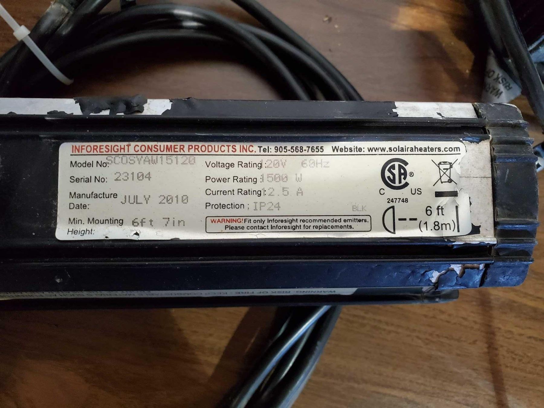 Solair Heaters Infrared Patio Heater with mount