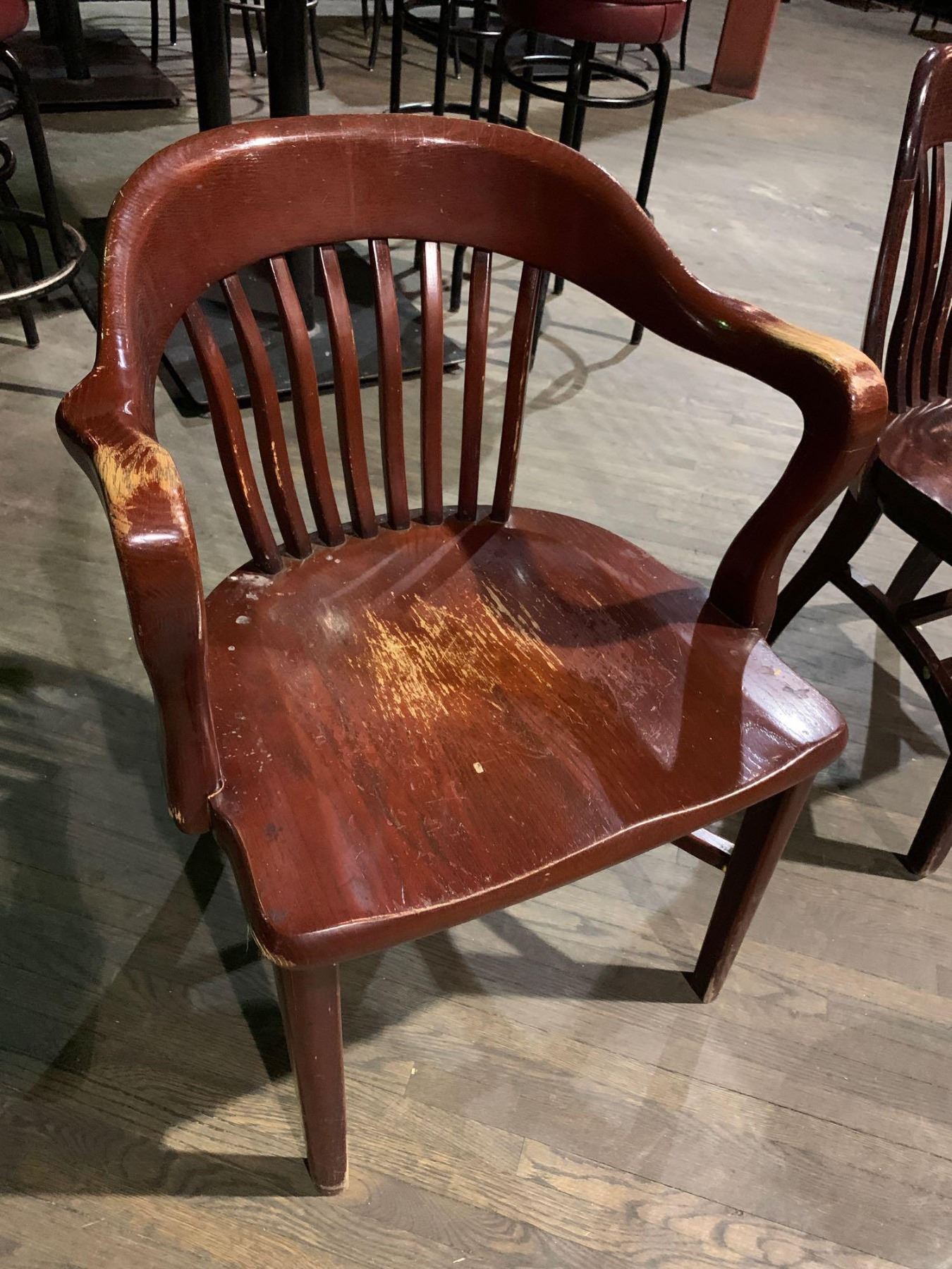 Solid Oak Slate Back Restaurant Arm Chair
