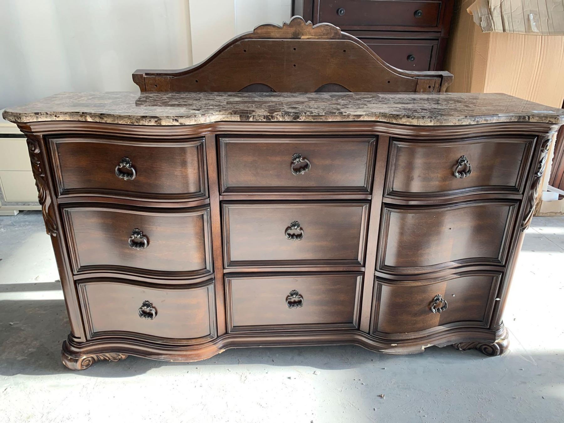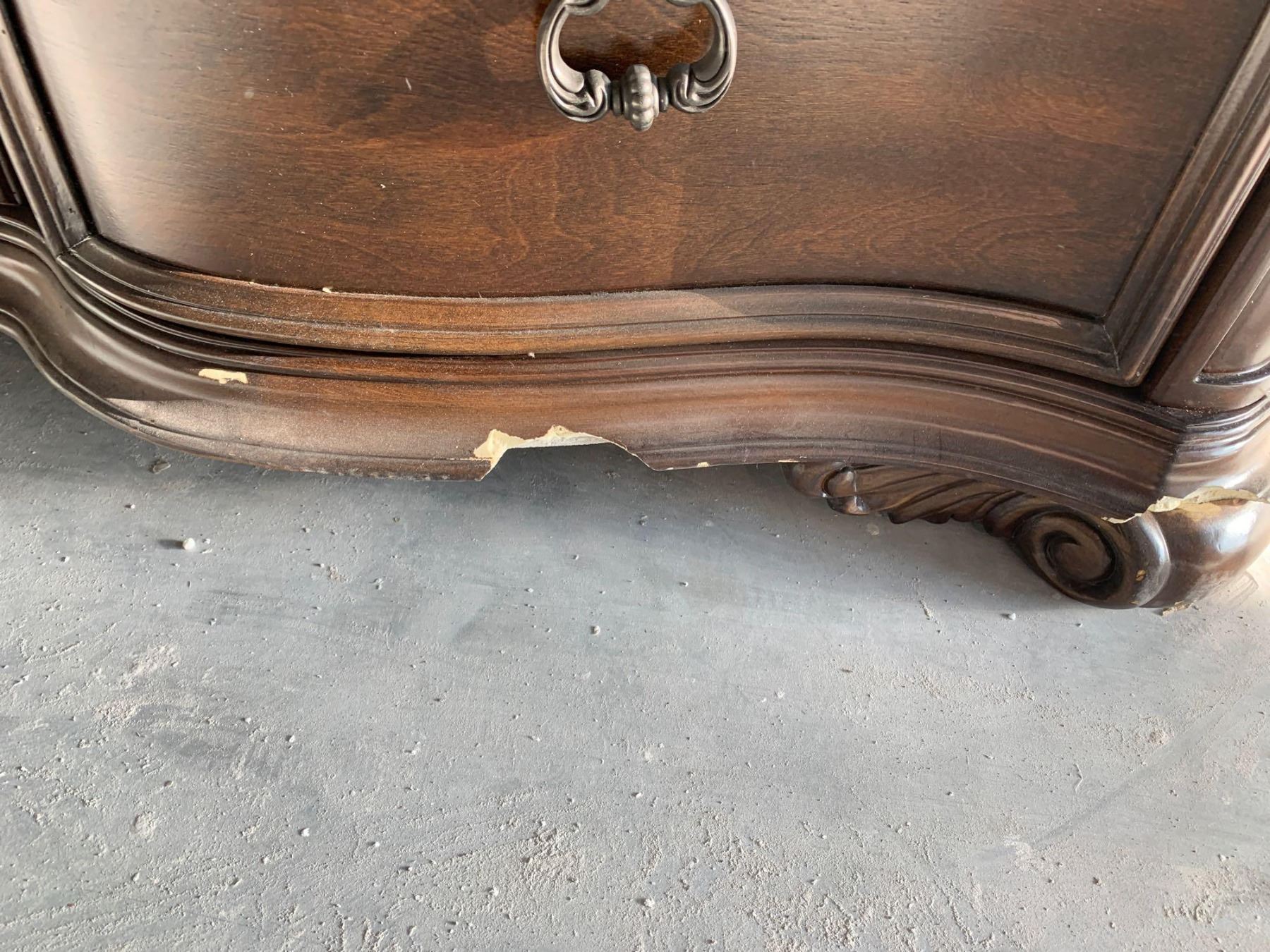 Solid Top Brown 9 drawer dresser with mirror, damage on bottom FLOOR DISPLAY MODEL- pick up Dec. 30 from 9-3, off site location 4231-109 AVE NE