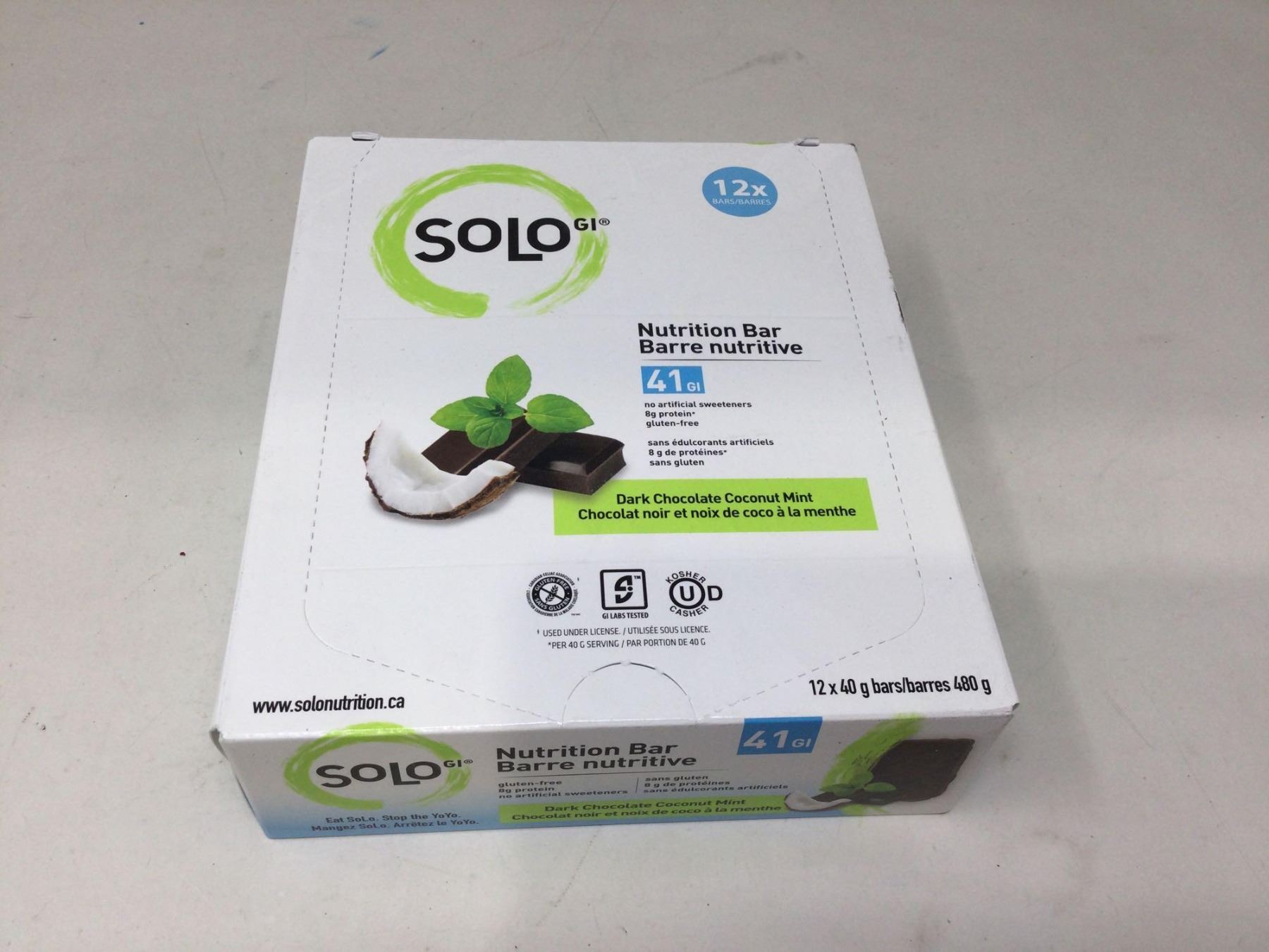 Solo Nutrition Bars- Dark Chocolate Coconut Mint (12 x 40g)