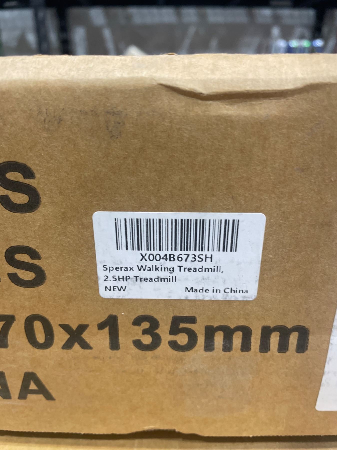 This listing is for a Sperax Walking Treadmill with a 2.5HP motor, identified by model number X004B673SH. The unit is marked as being made in China, with dimensions of 570x135mm as noted on the product labeling. Please refer to provided images for additional product details and specifications.
