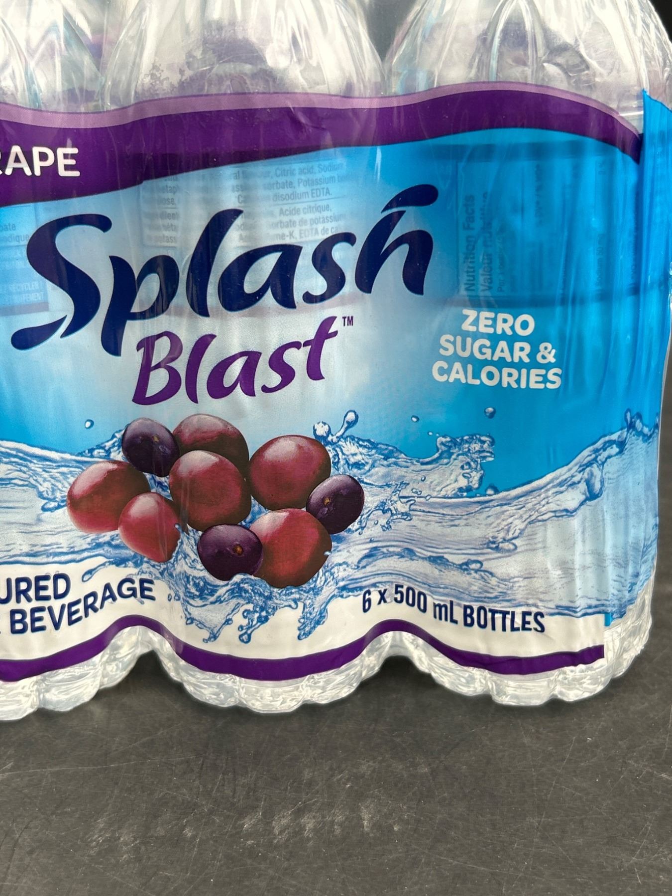 Splash Blast Acai Grape Flavoured Water Beverage, 6 x 500 mL Bottles