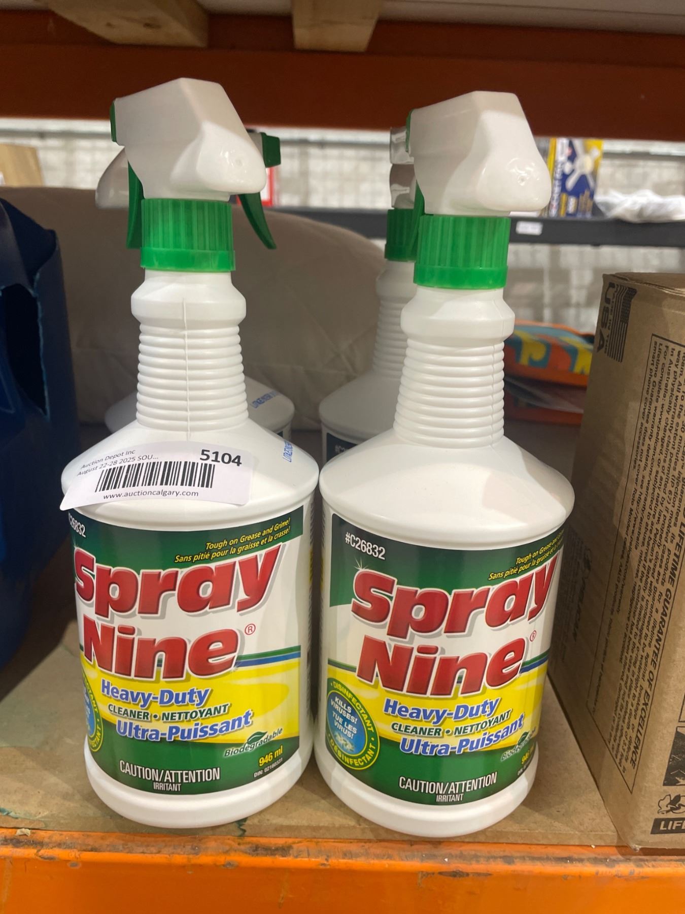 Lot contains 3 Spray Nine heavy-duty cleaner and disinfectant bottles. Each bottle has a 32 oz capacity, featuring an ergonomic spray nozzle. Designed for cleaning and disinfecting multiple surfaces. Item number visible on the label: 23332.